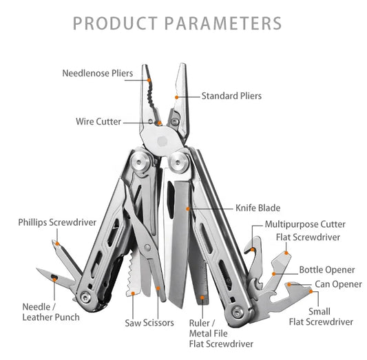 16-in-1 Multi Tool Pliers Stainless Steel EDC Multitool with Pocket Knife for Camping Survival Outdoor Activities