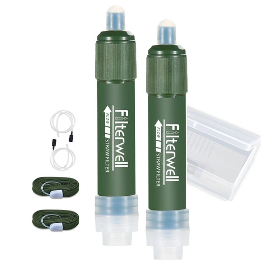 Two Pcs 2 in 1 Low Pressure Hiking - 0.1 Micron Filtration Water Filter Straw Camping Drinking Straw