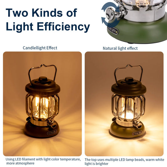 LED Camping Lantern Dimming Emergency Lamp Type C Charging Retro Camping Light 4 Light Modes IPX4 Waterproof for Fishing Camping