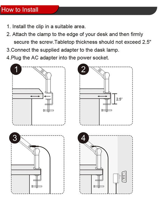 Led Desk Lamp Adjustable Swing Arm Lamp with Clamp