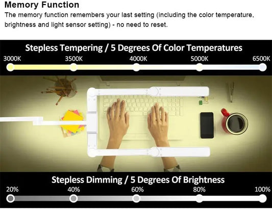 2023 Newest Auto Dimming Swing Arm Folding Led Desk Lamp Eye Protection Table Lamp with Clamp