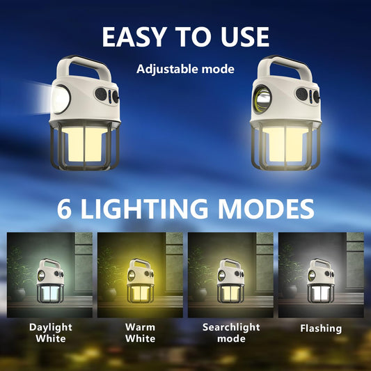 LED Camping Lantern Rechargeable, Portable LED Battery Powered Camping Light, Waterproof Tent Light with 6 Light Modes, 2400mAh Power Bank Lantern Flashlight for Hiking, Hurricane Emergency