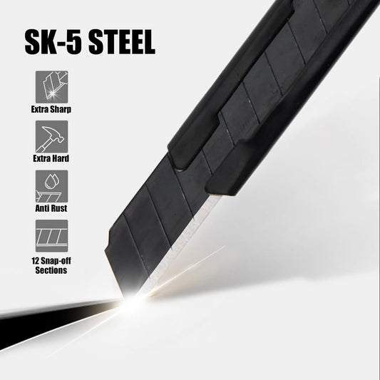 Metal Box Cutter Body, with Safety Lock (Black Red)