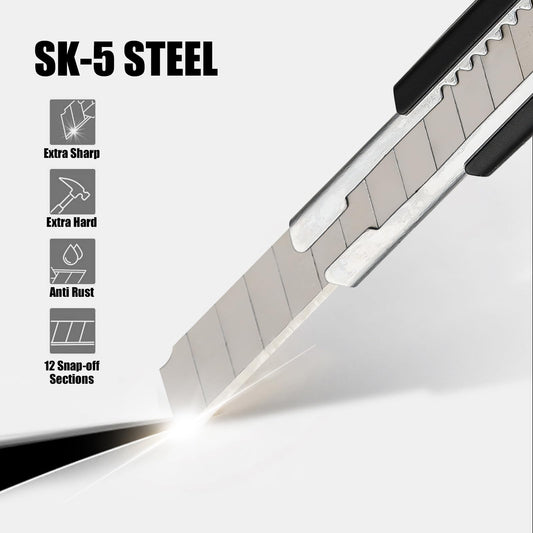 Metal Box Cutter Body, with Safety Lock (Black White)