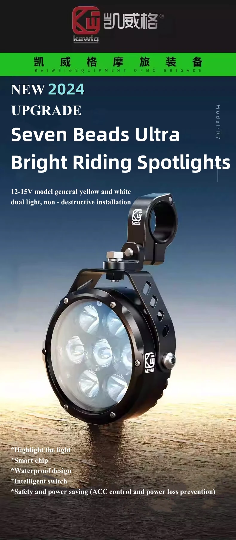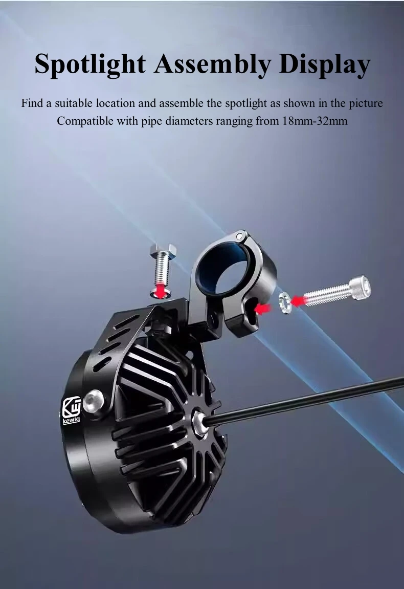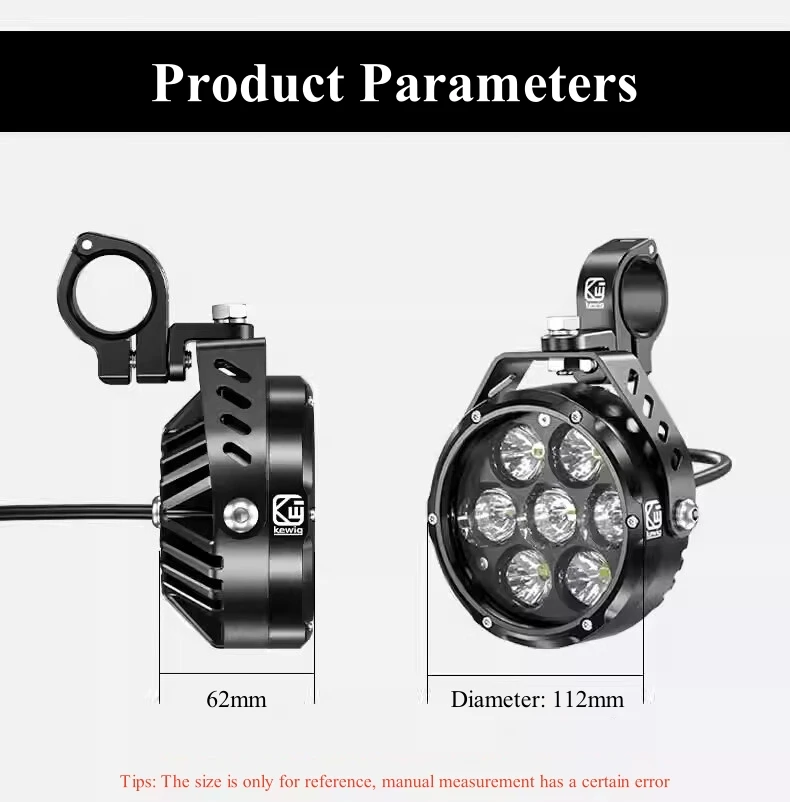 Kewig motorcycle led light is scientifically designed with high quality chips and high borosilicate optical lenses. The high quality chip gives it a high light transmission of up to 60W and 6000 lumens, the optical glass lens greatly improves the light throw and high focus of the driving light, whether it's a night or a rainy or foggy day, it's perfectly suited to provide the perfect beam of light for your off-road.
