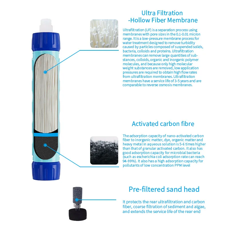 * Portable & Personal water filter for Outdoor &emergency Application