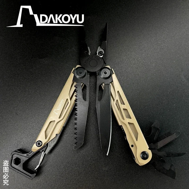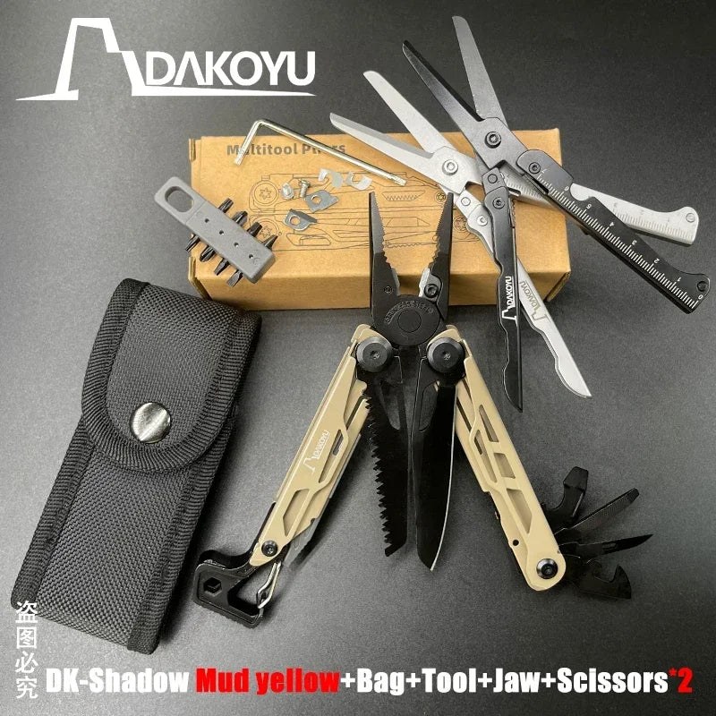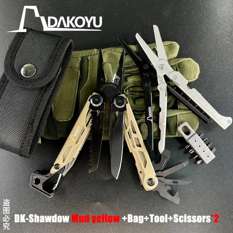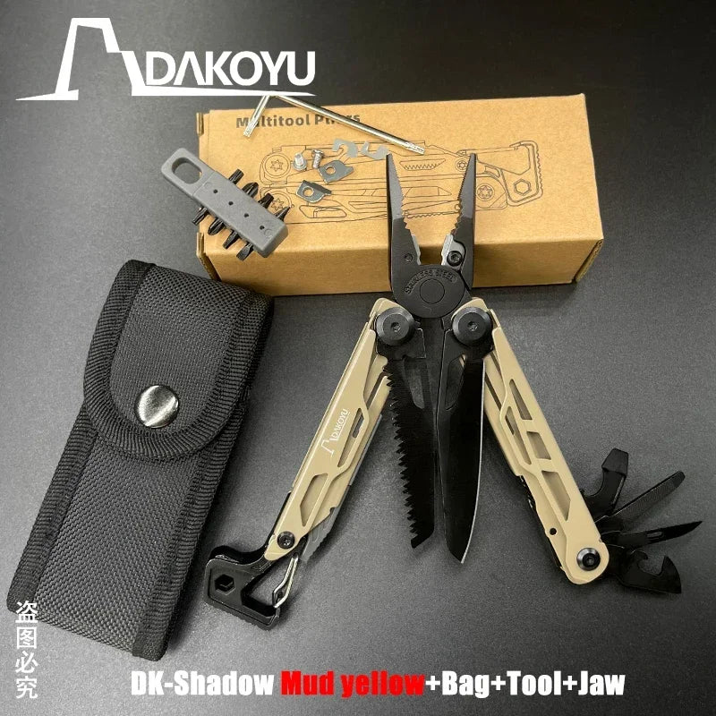 DAKOYU Mud Yellow 23-in-1 Folding Multifunctional Tool Pliers Multifunctional Combination Tool Pliers EDC Outdoor Equipment