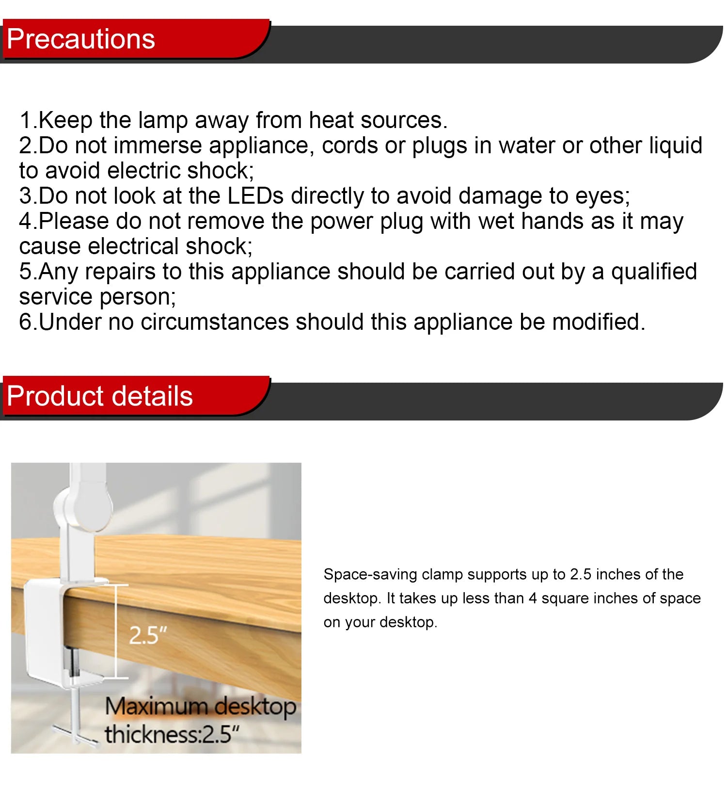 | Packing | 1 x Led Desk Lamp/ 1 x DC Driver / 1 x Guide Instruction |