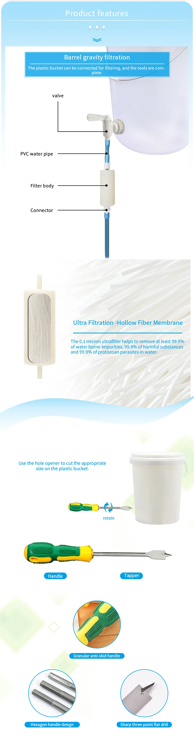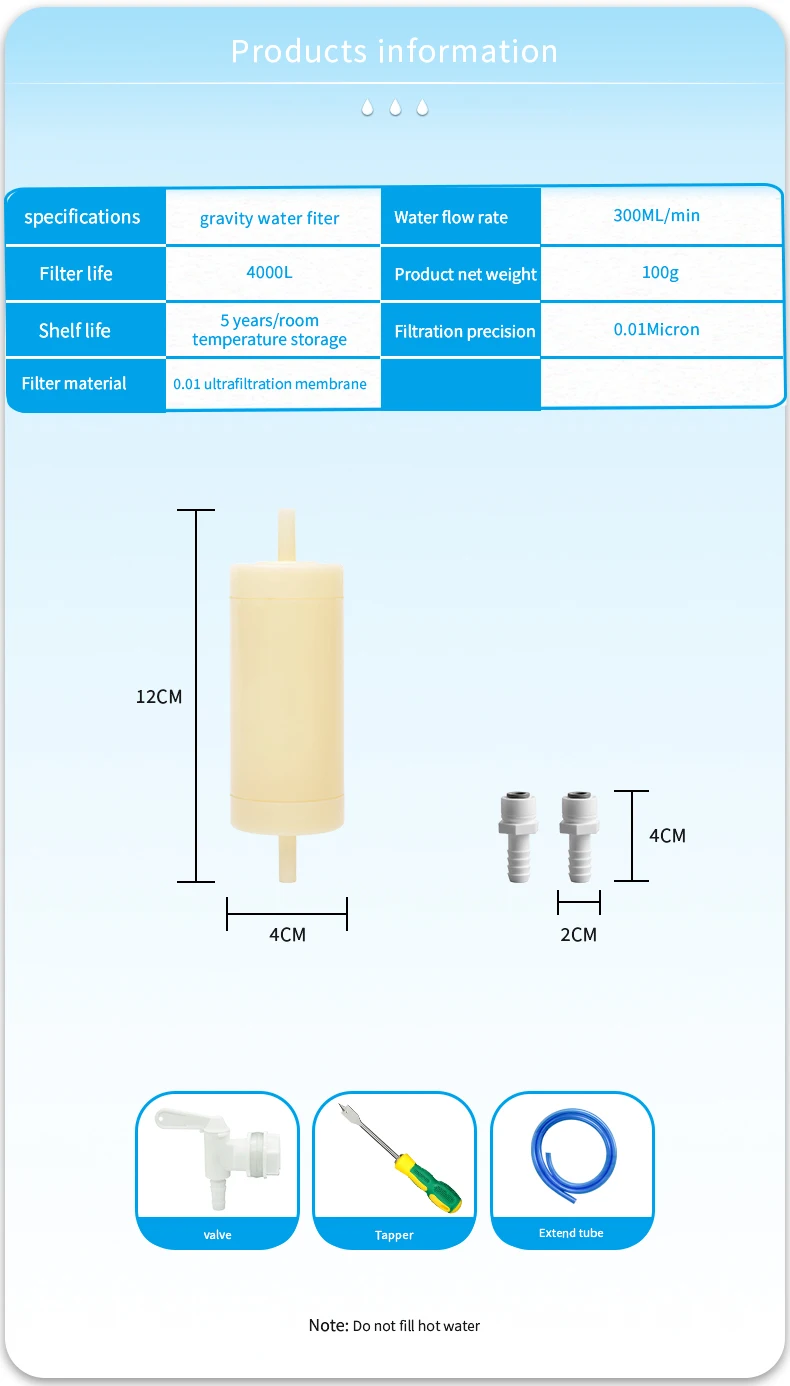 Filterwell 0.01 Micron Membrane Plastic Bucket Gravity Water Filter Straw