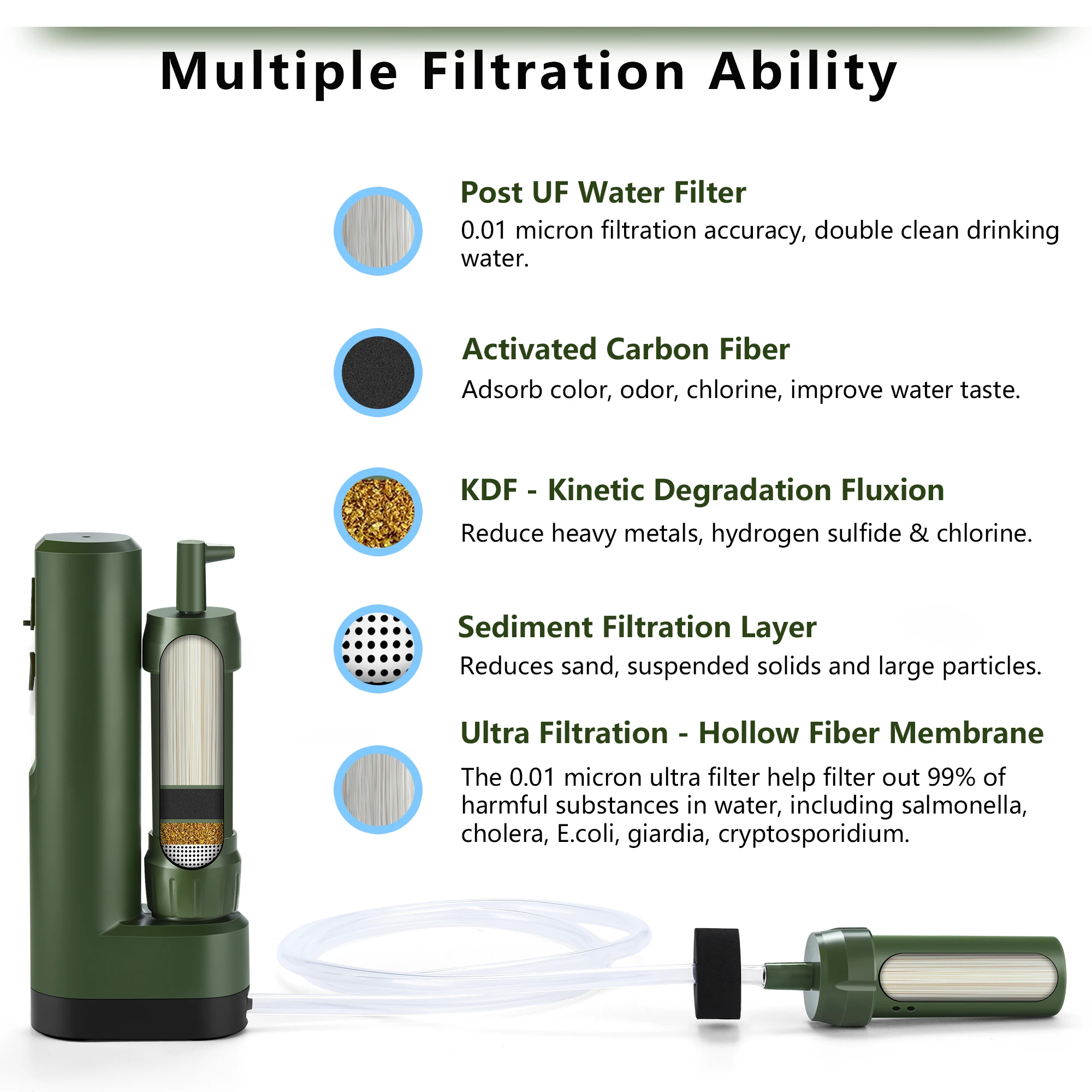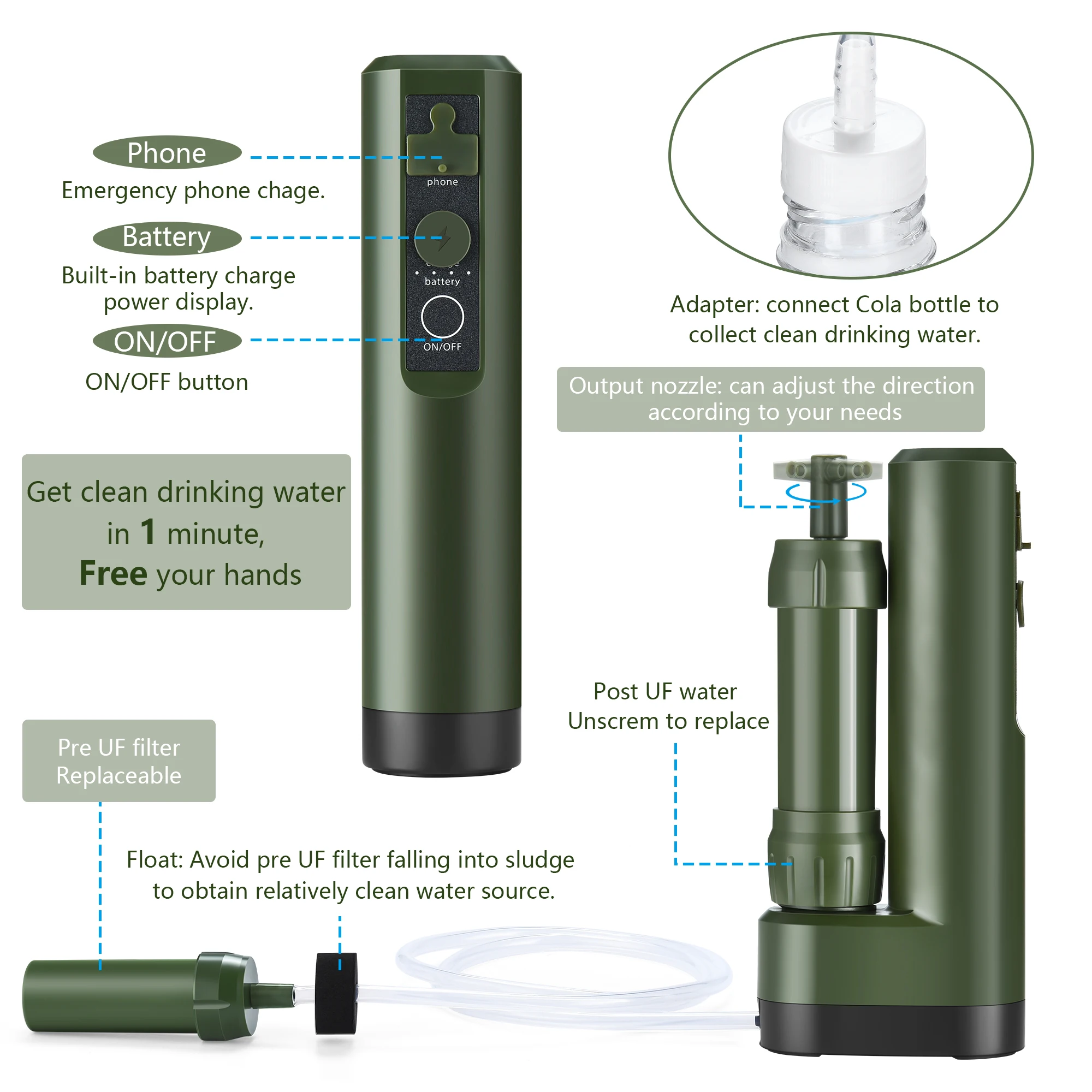 Filterwell 0.01 Micron Personal Drinking Mini Camping Portable Electric Water Filter Purifier Life Water Straw for Camping