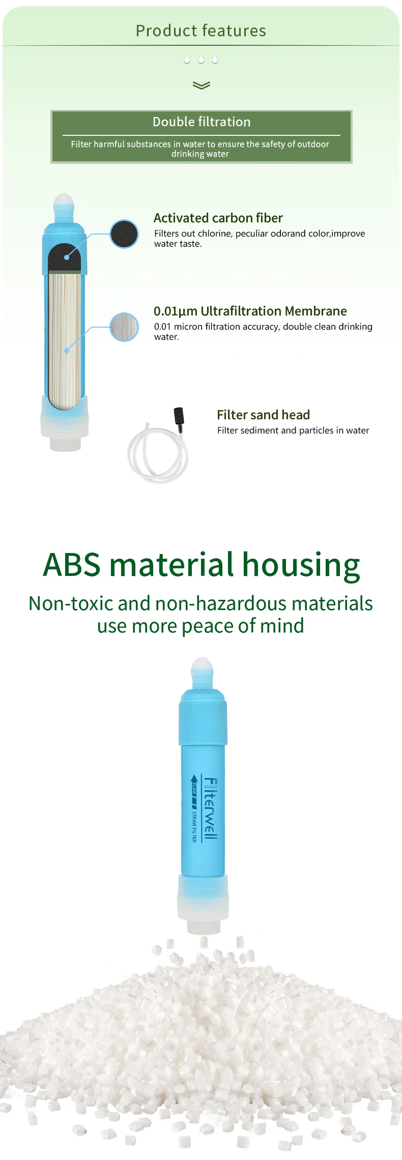 Filterwell 0.01 Um Membrane Solutions Purifier Personal Hiking Camping Outdoor Survival Portable Life Water Filter Straw