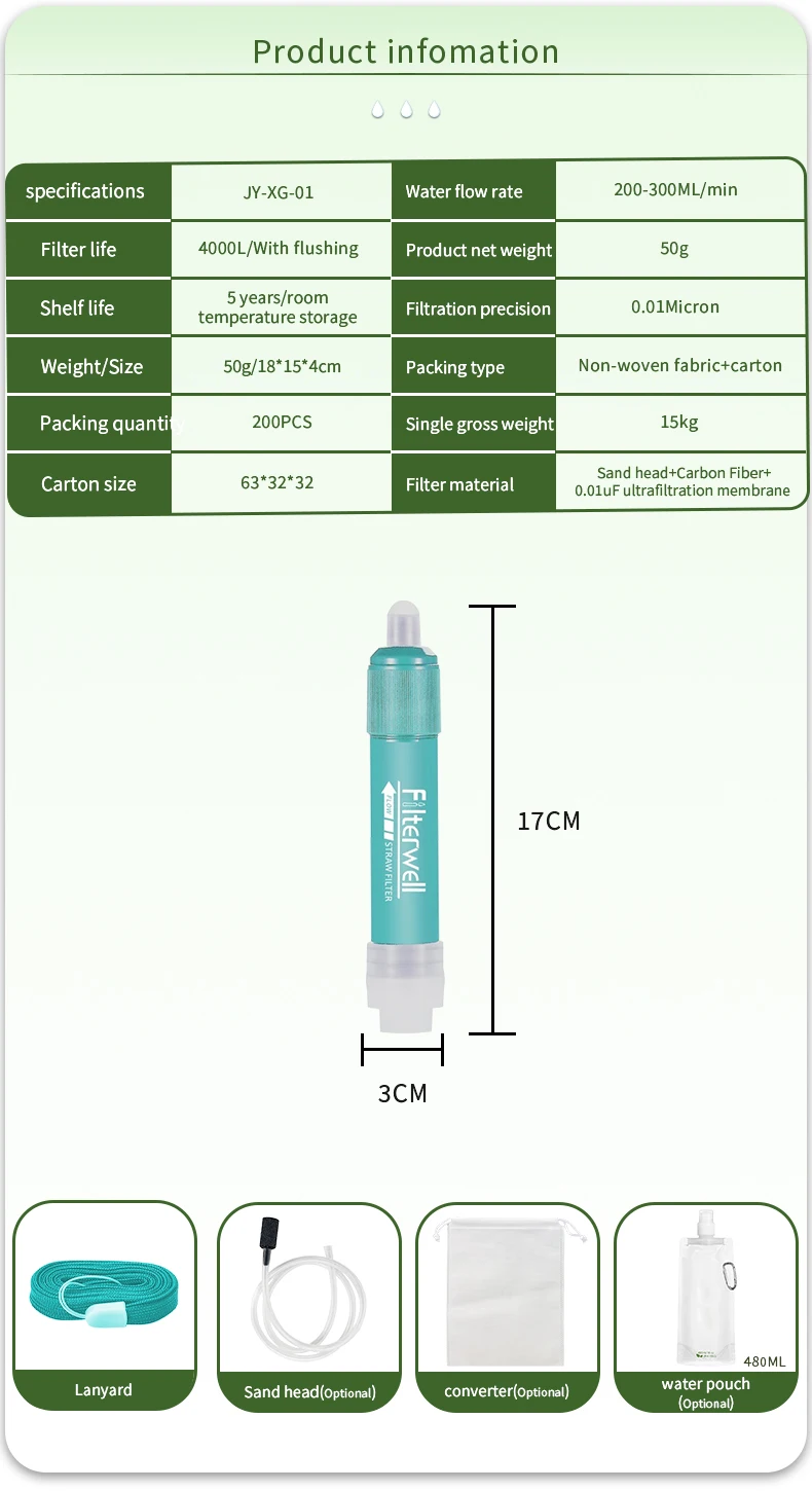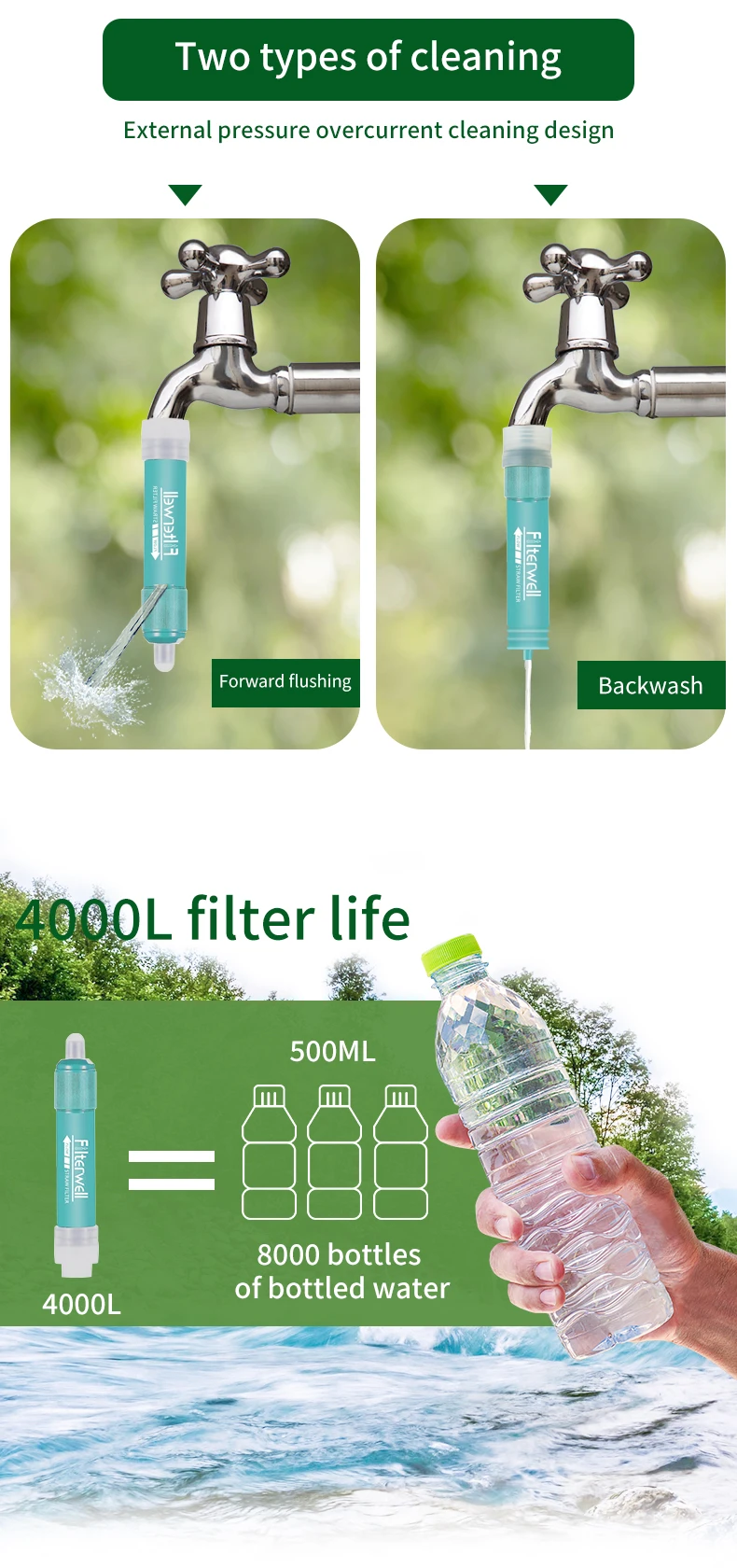 Filterwell 0.01 Um Membrane Solutions Purifier Personal Hiking Camping Outdoor Survival Portable Life Water Filter Straw