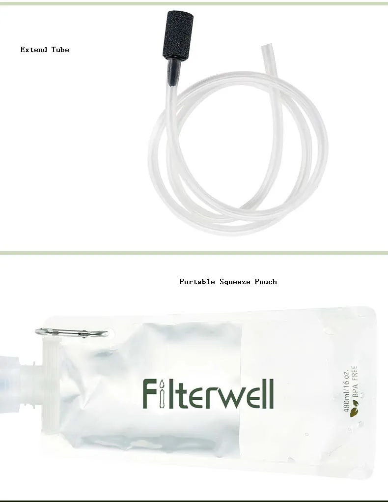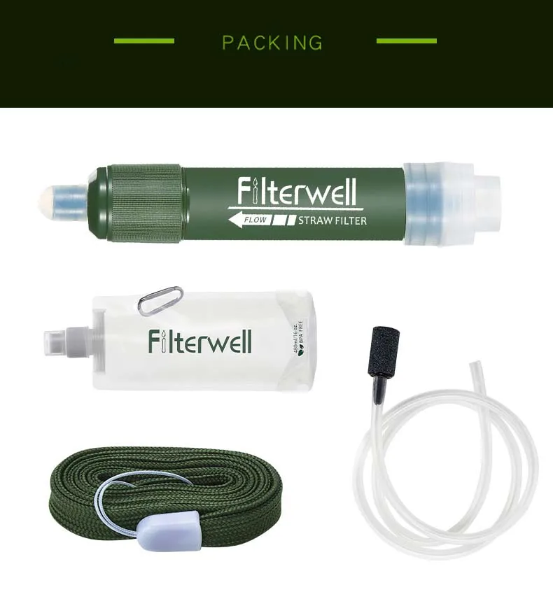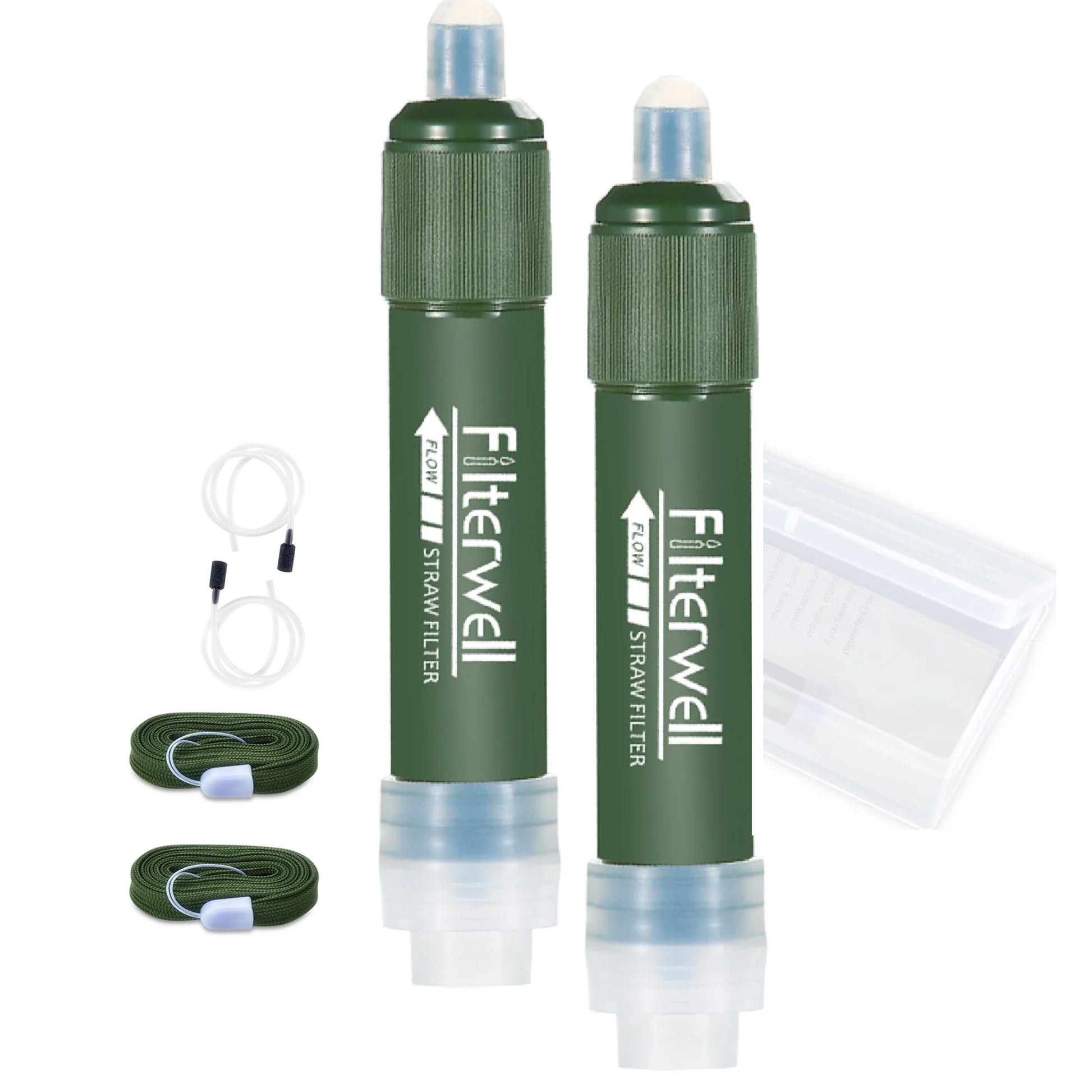 Filterwell 2 in 1 case Outdoor emergency portable personal water filtration filter straw purifier survival gear