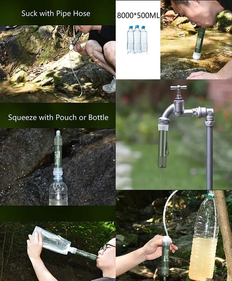 This portable and light weight water straw is ideal for backpacking, hiking, camping, scouting,back country travel, mission trip and emergency preparedness. Hollow fiber UF membrane carbon fiber combination .can remove 99.9999% such as salmonella, cholera, E.coli, and protozoa, such as giardia, cryptosporidium, and sediment, odor, color, chlorine, organic matter and heavy metal.