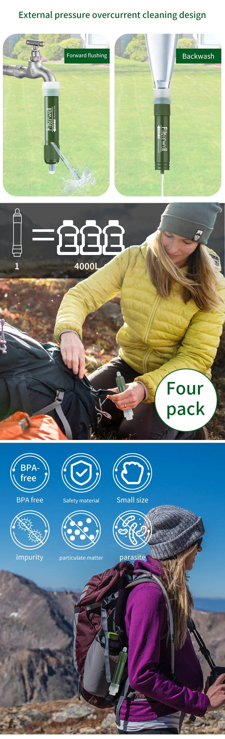 Filterwell 4PCS Mini Personal Hiking Portable Personal Emergency Life Outdoor Survival Water Filter Straw