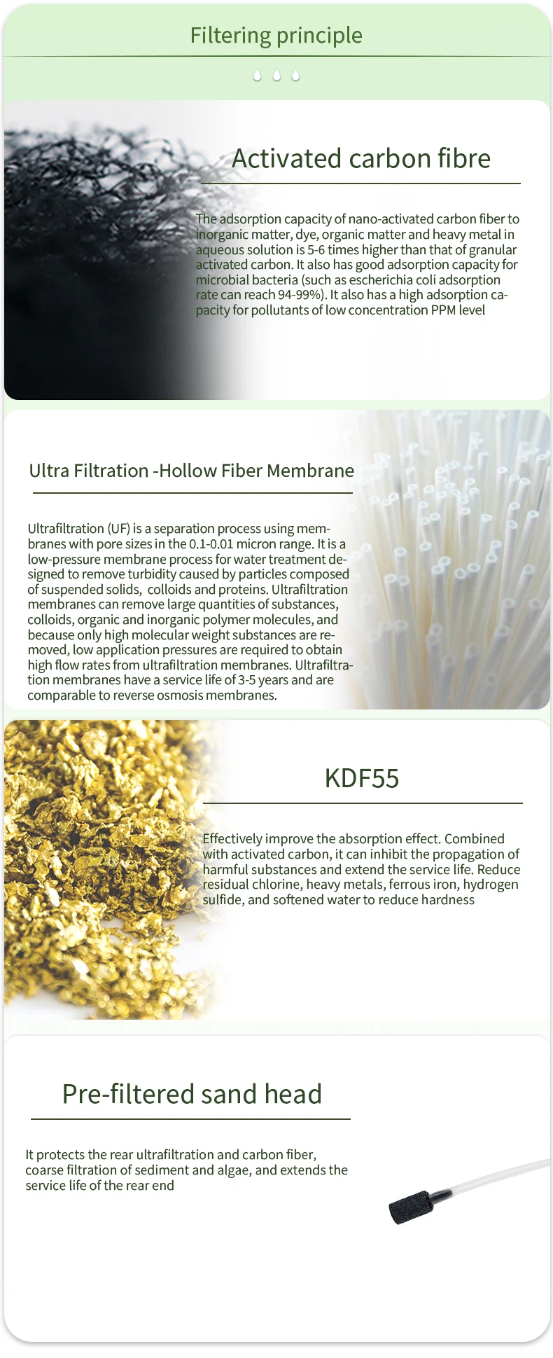 Filterwell water filter straw. This portable and light weight water straw is ideal for backpacking, hiking, camping, scouting, back country travel, mission trip and emergency preparedness. Hollow fiber UF membrane and anti-bacterial carbon fiber combination .can remove 99.9999% such as salmonella, cholera, E.coli, and protozoa, such as giardia, cryptosporidium, and sediment, odor, color, chlorineand heavy metal. * Unique Clip for hook * Multi Function Silicone Rubber Flexible Adaptor suit for Most of PET bottle and Squeeze Pouch * Faucet mount & Gravity Filtration available * SGS Bacteria Filter passed 锛孭roducts Material Meet NSF/EPA Standard . * 3-5 Filter grade for selection. customized design available