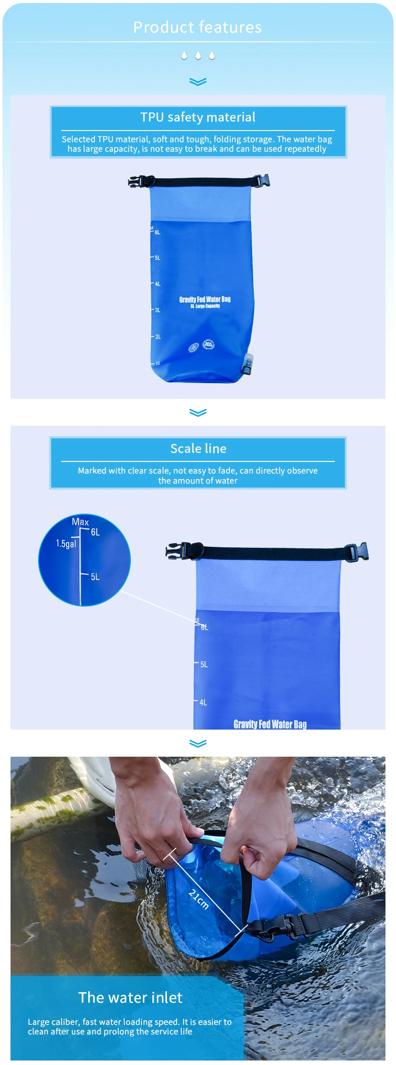 Filterwell 6L TPU Large Capacity Hydration Bladder Outdoor Portable Gravity Water Filter Purifier Filter Water Bag Camping