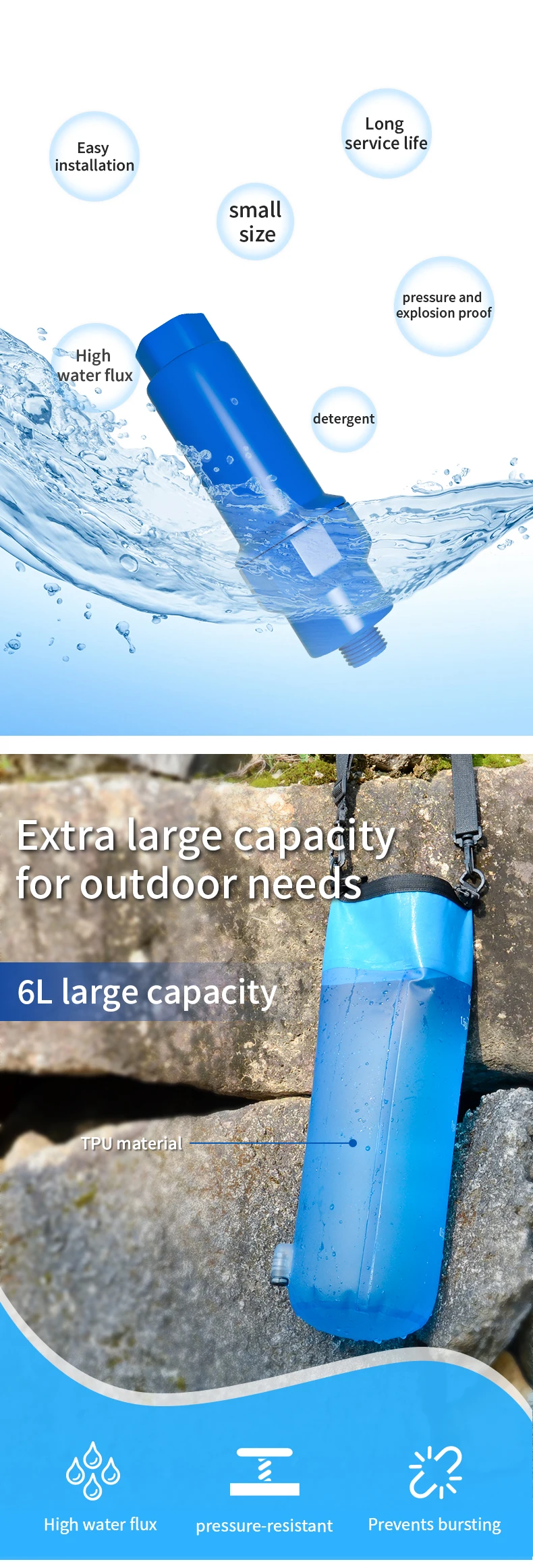 Filterwell 6L TPU Outdoor Portable Gravity Water Filter Purifier Filter Water Bag Camping
