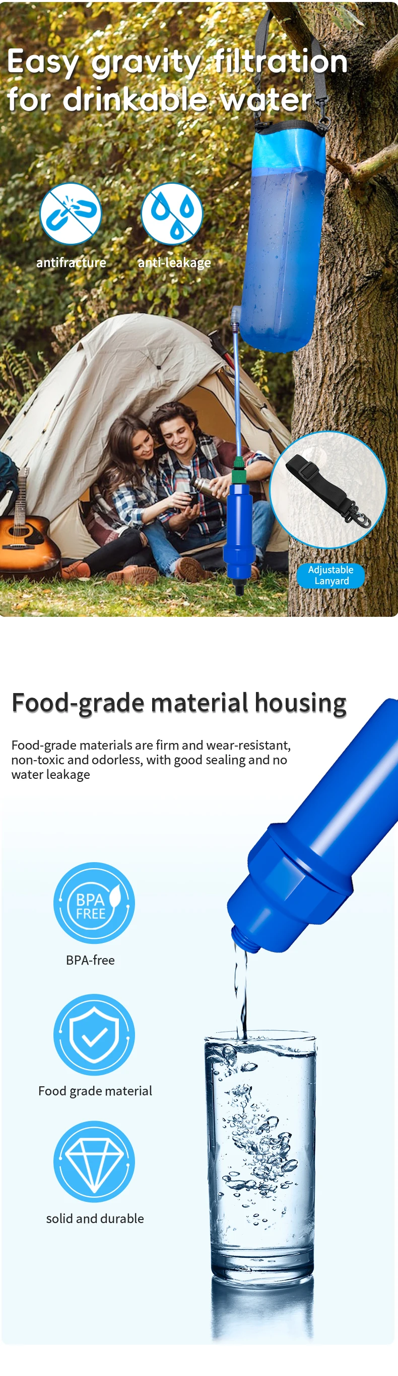 A gravity water filter bag is a portable water purification device designed to provide clean and safe drinking water using the