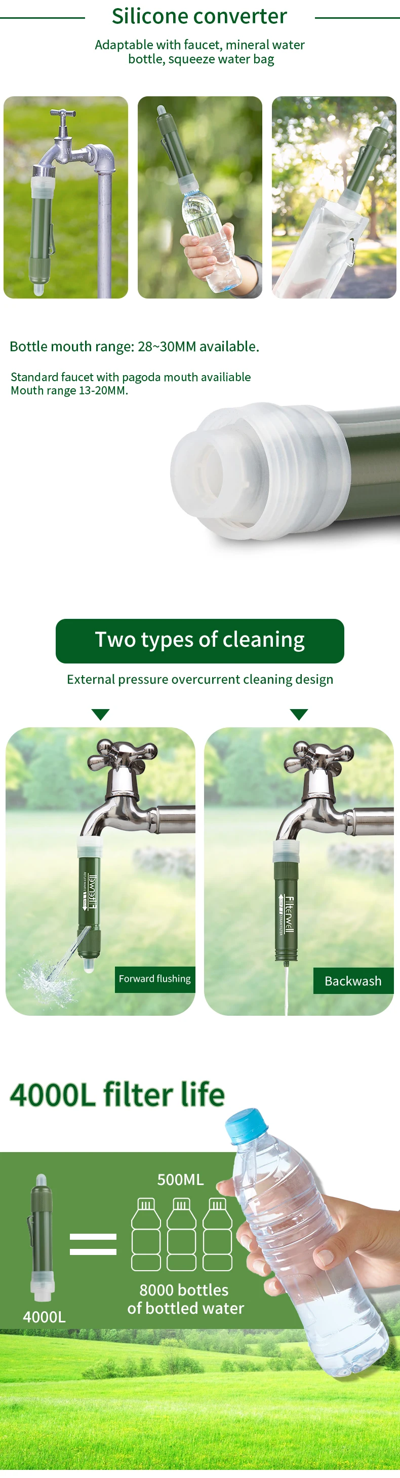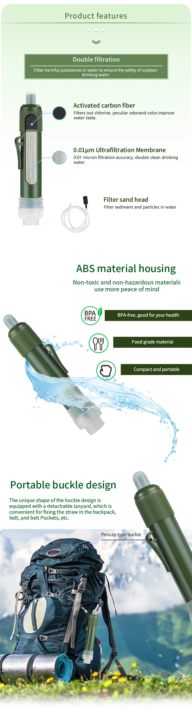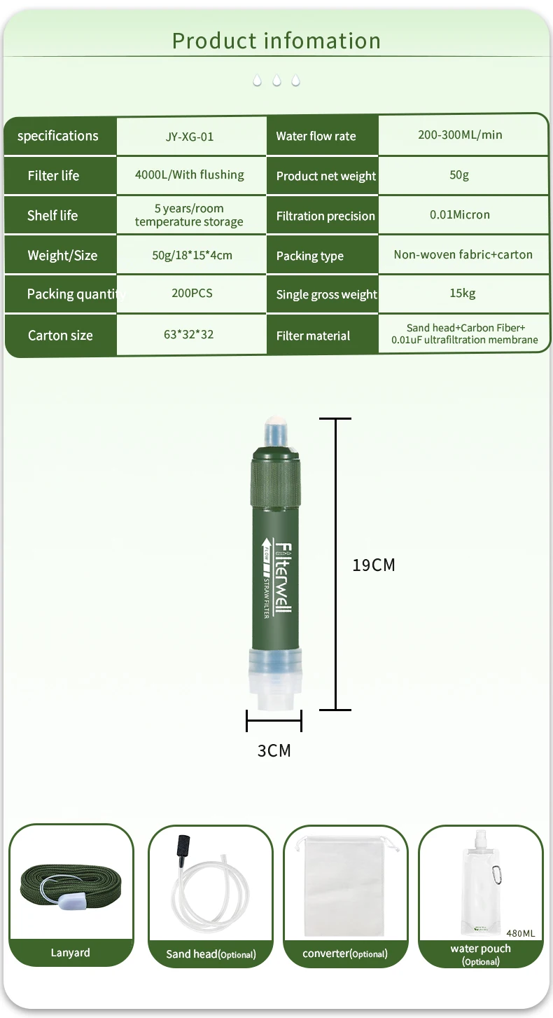 Filterwell Camping Mini Outdoor Hiking Personal Water Purifier Portable Life Emergency Survival Water Filter Straw