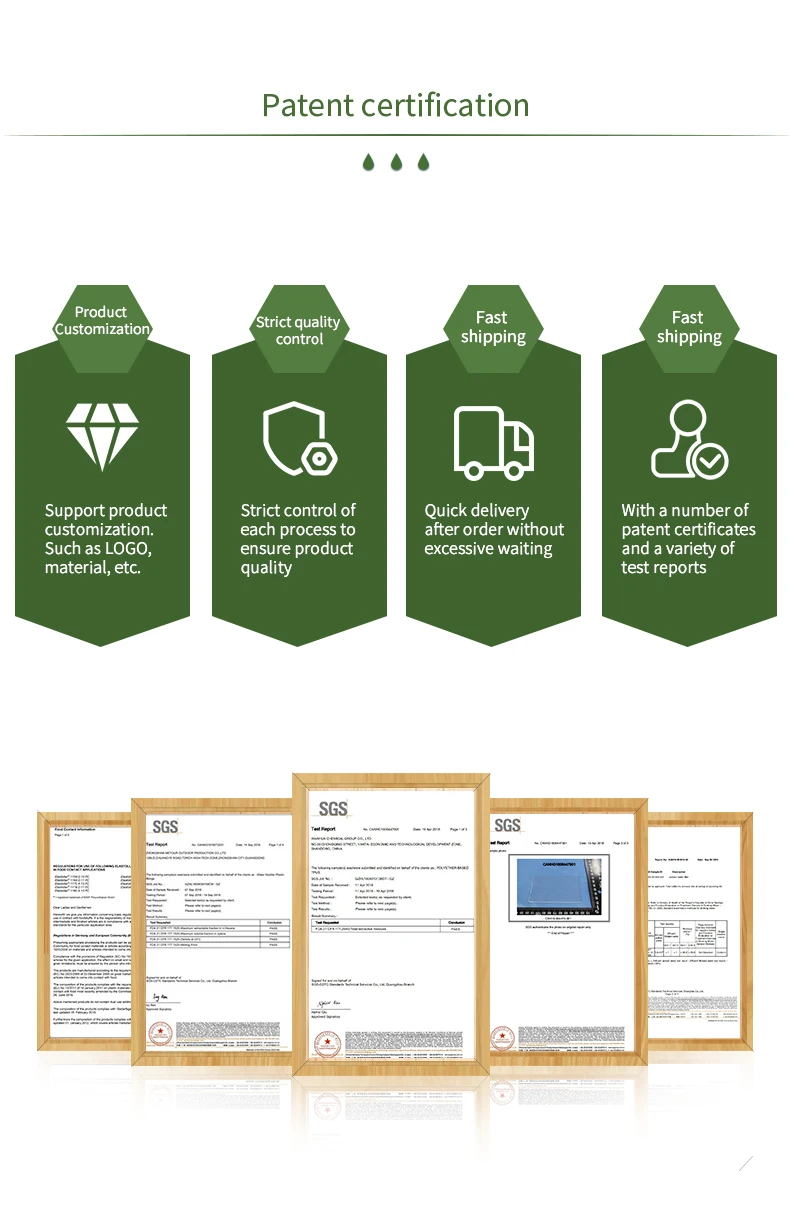 Common packaging: Polyester waterproof cloth bag, non-woven cloth bag, transparent PP plastic box, neutral yellow paper box, brand color box, blister paper card packaging.