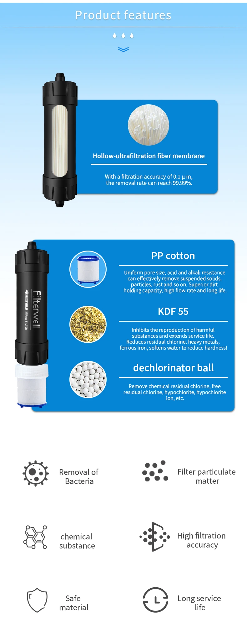 Filterwell Mini Camping Travel Hiking Personal Water Purifier Portable Life Emergency Survival Outdoor Water Filter Straw