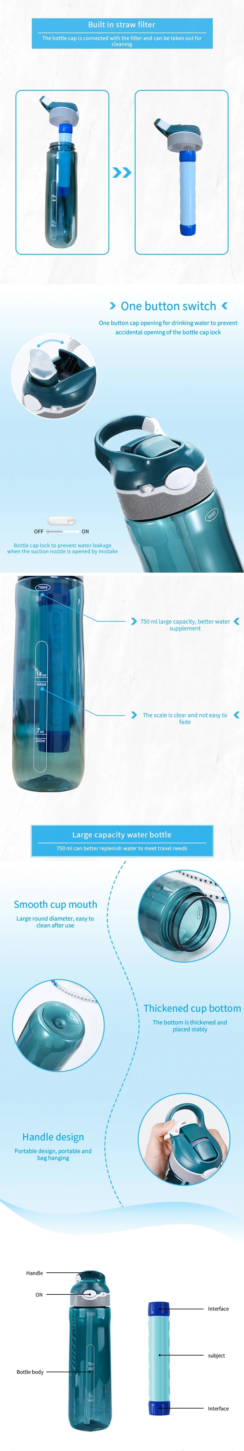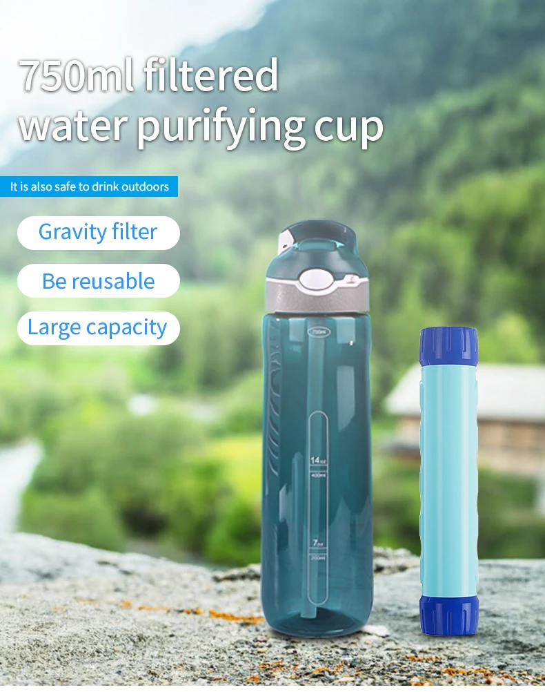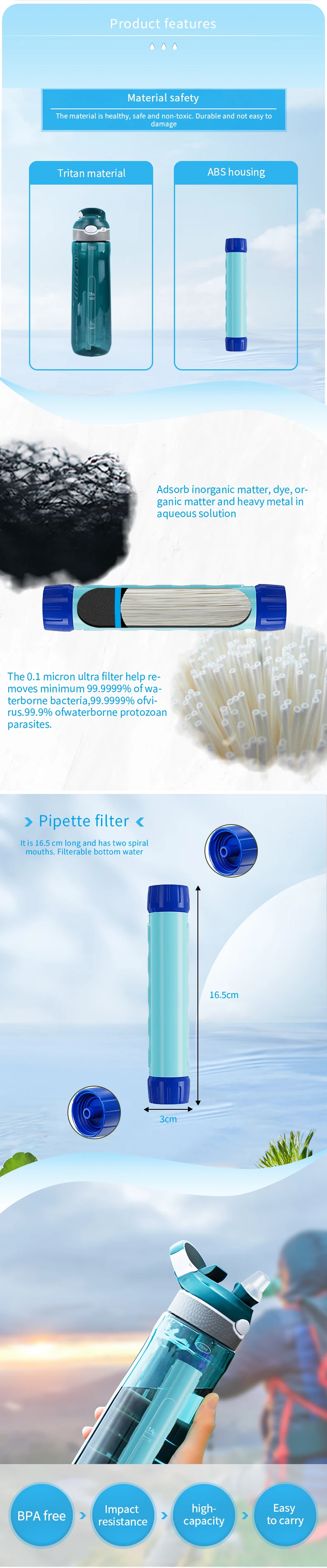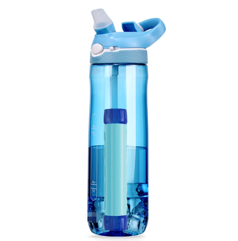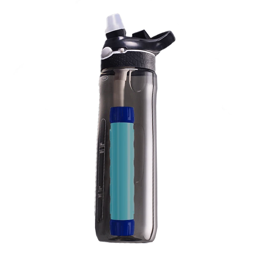 Filterwell Sports Hiking Camping Portable Water Filtration Purifier Water Plastic Filter Bottle With Life Water Straw