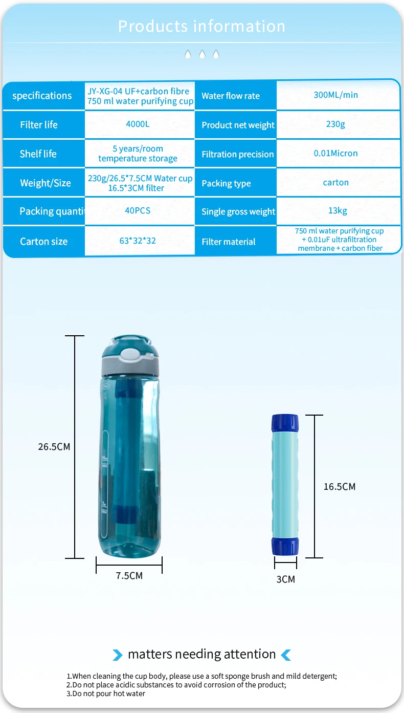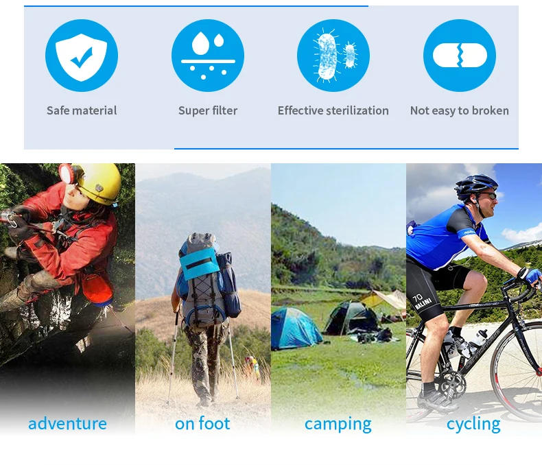 Filterwell Sports Hiking Camping Portable Water Filtration Purifier Water Filter Bottle With Life Water Straw