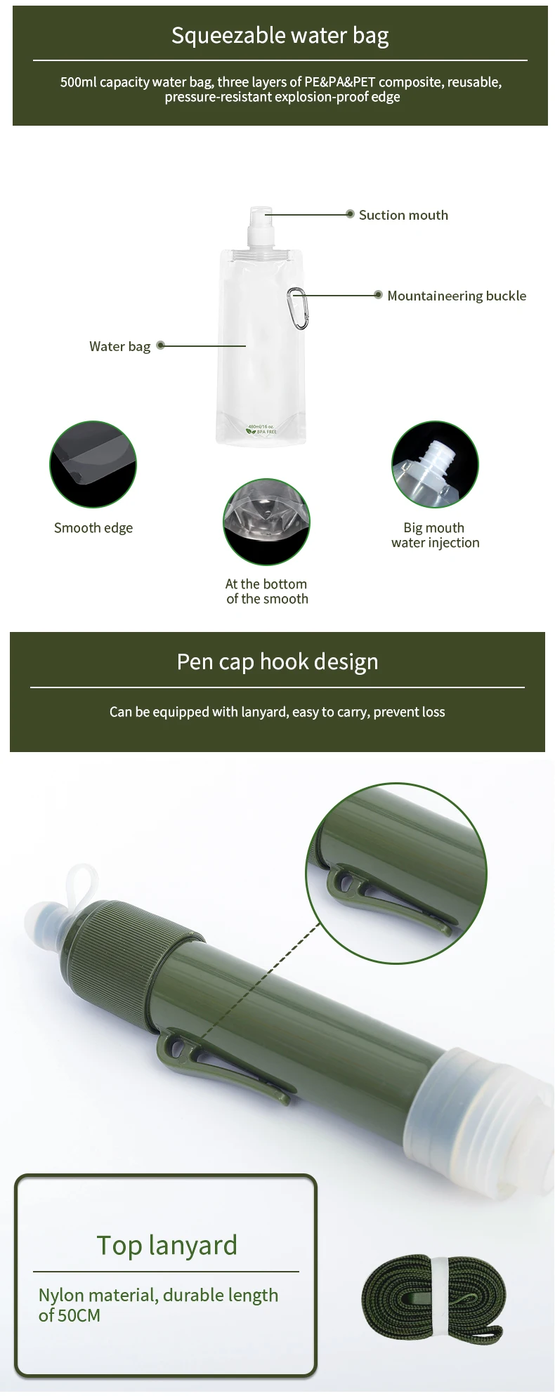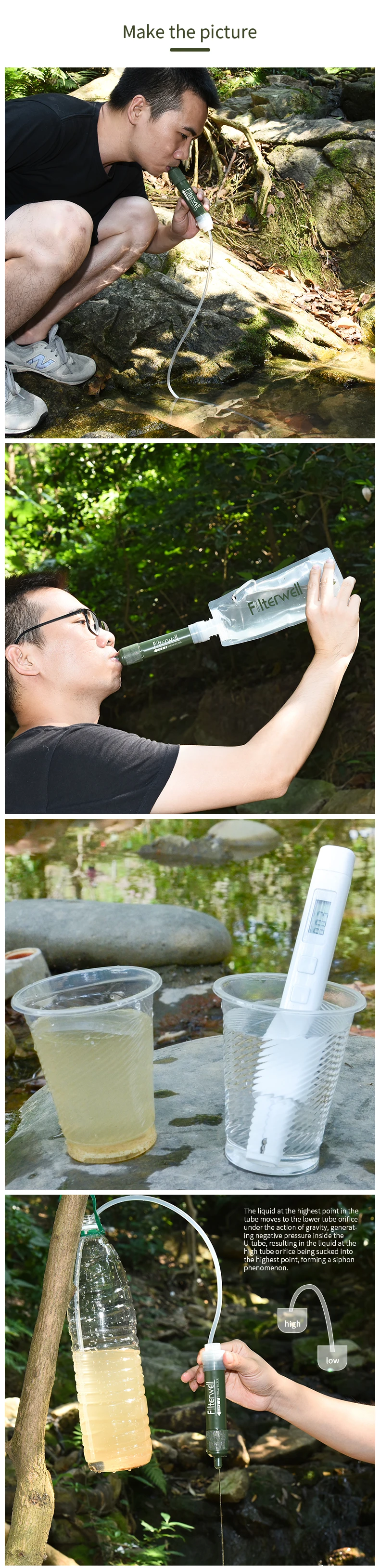 Filterwell UF Membrane Camping Outdoor Personal Life Water Filter Straw Survival Kit Gear