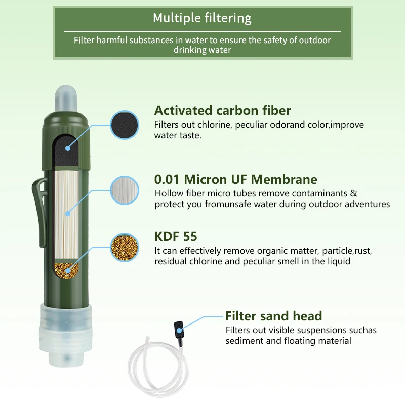Filterwell UF Membrane KDF Outdoor Portable Personal Water Filtration Filter Straw
