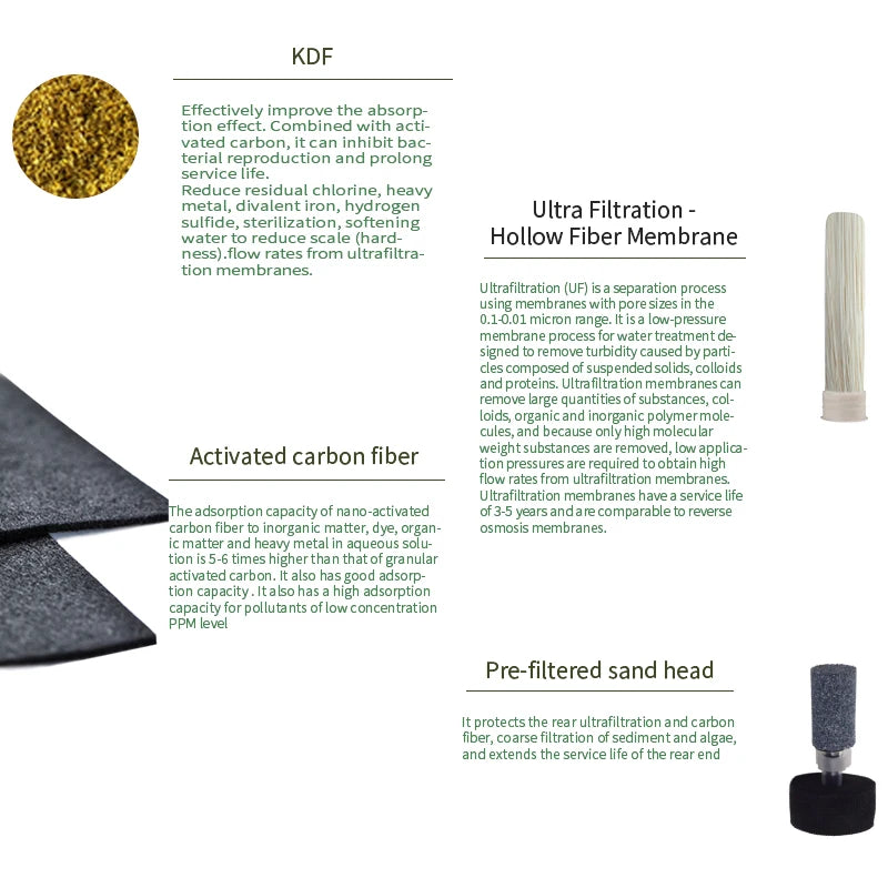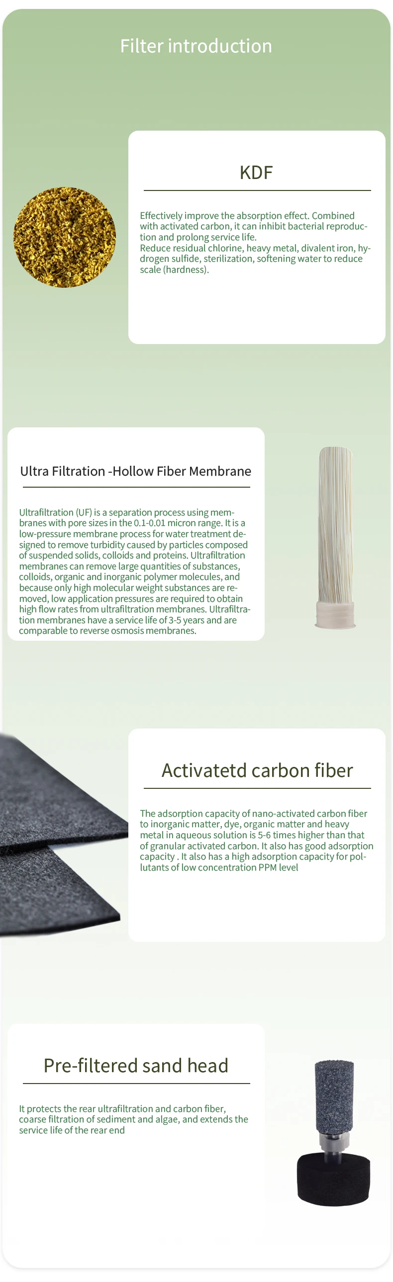*Third stage water solutions- Ultra Filtration : Sand Filter Head /Cleanable 100,00L UF Composition filtration(PP sediment filter -Ultra hollow fiber membrane -Carbon Fiber Filter ) .Provide Medical Grade Filtration, remove larger then 0.01um, such as organics,cancer-organic substance.