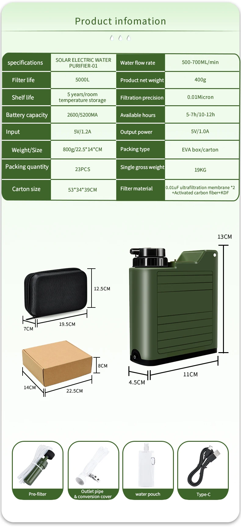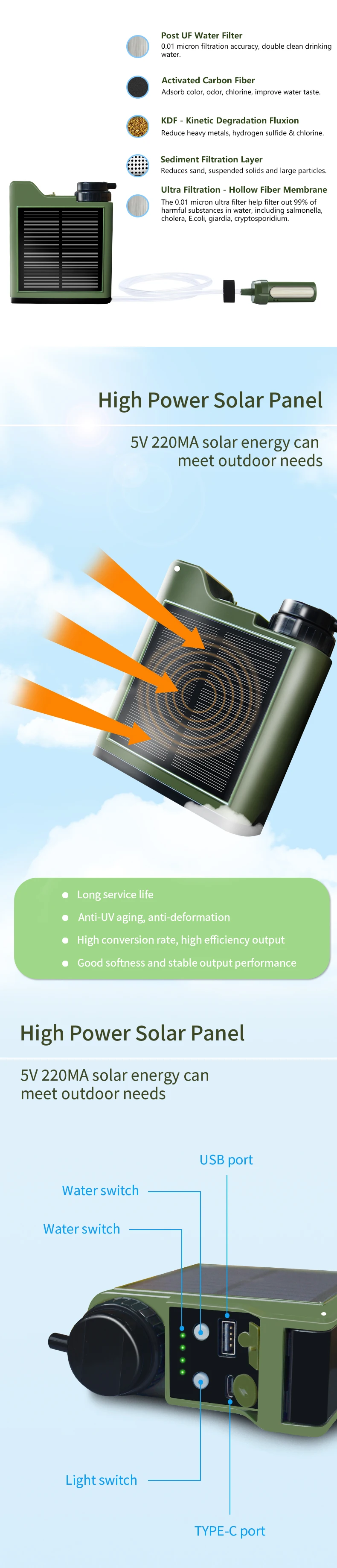 Hiking Drinking Mini Pump Electric Water Filter Straw System Camping Outdoor Portable Personal Electric Water Purifier Filter