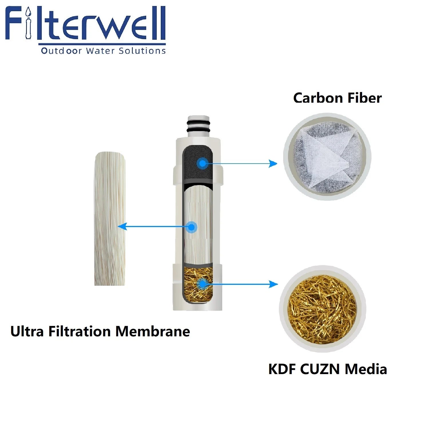 * CLEAN TASTING WATER: The activated carbon Fiber work with 0.01 micro UF filter removes chlorine, taste and odor, improving water with no need to use chlorine or chlorine tablets with harsh tastes and smells.