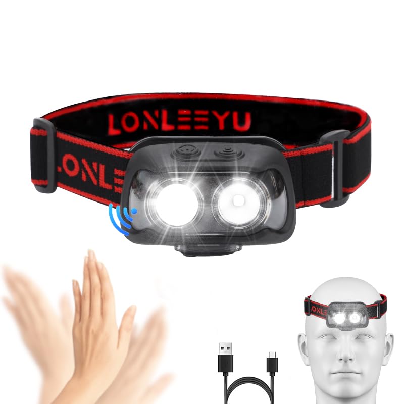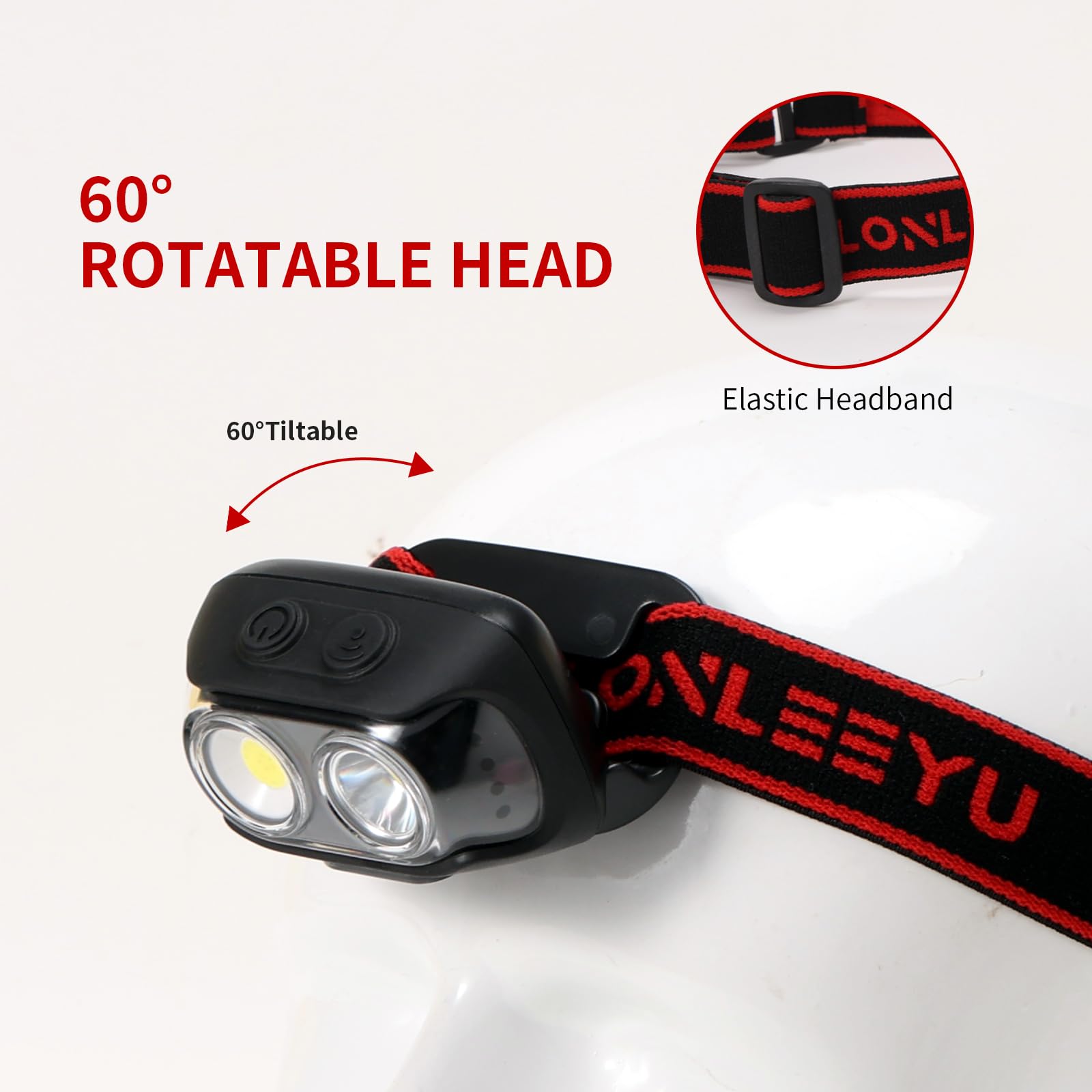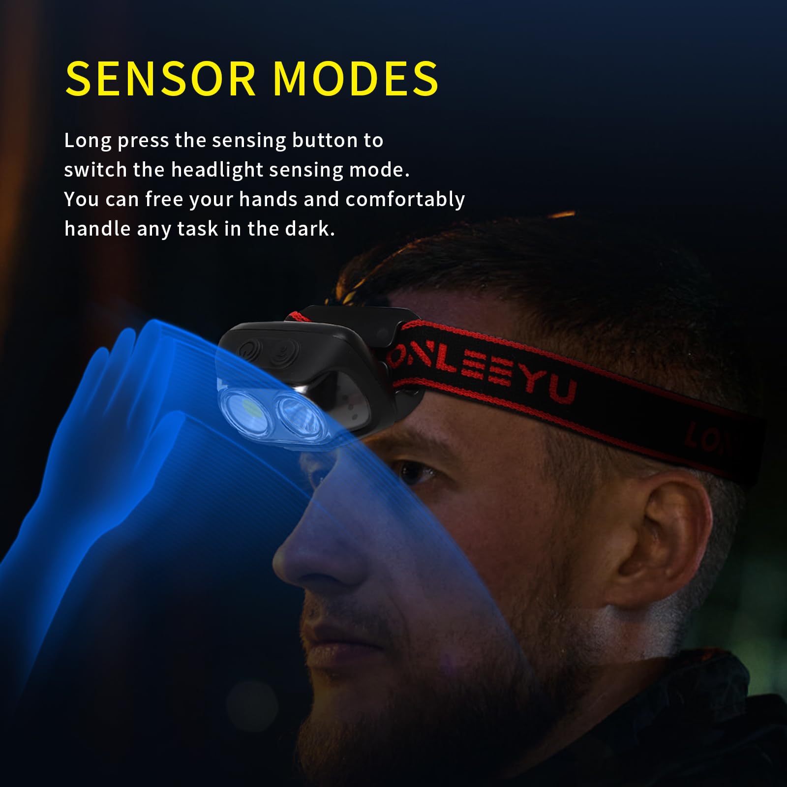 LONLEEYU Rechargeable Headlights, LED Headlight Flashlight with Motion Sensor, Adjustable Headband IPX4 Waterproof, 6 Lighting Modes Suitable for Outdoor, Running, Camping and Night Fishing