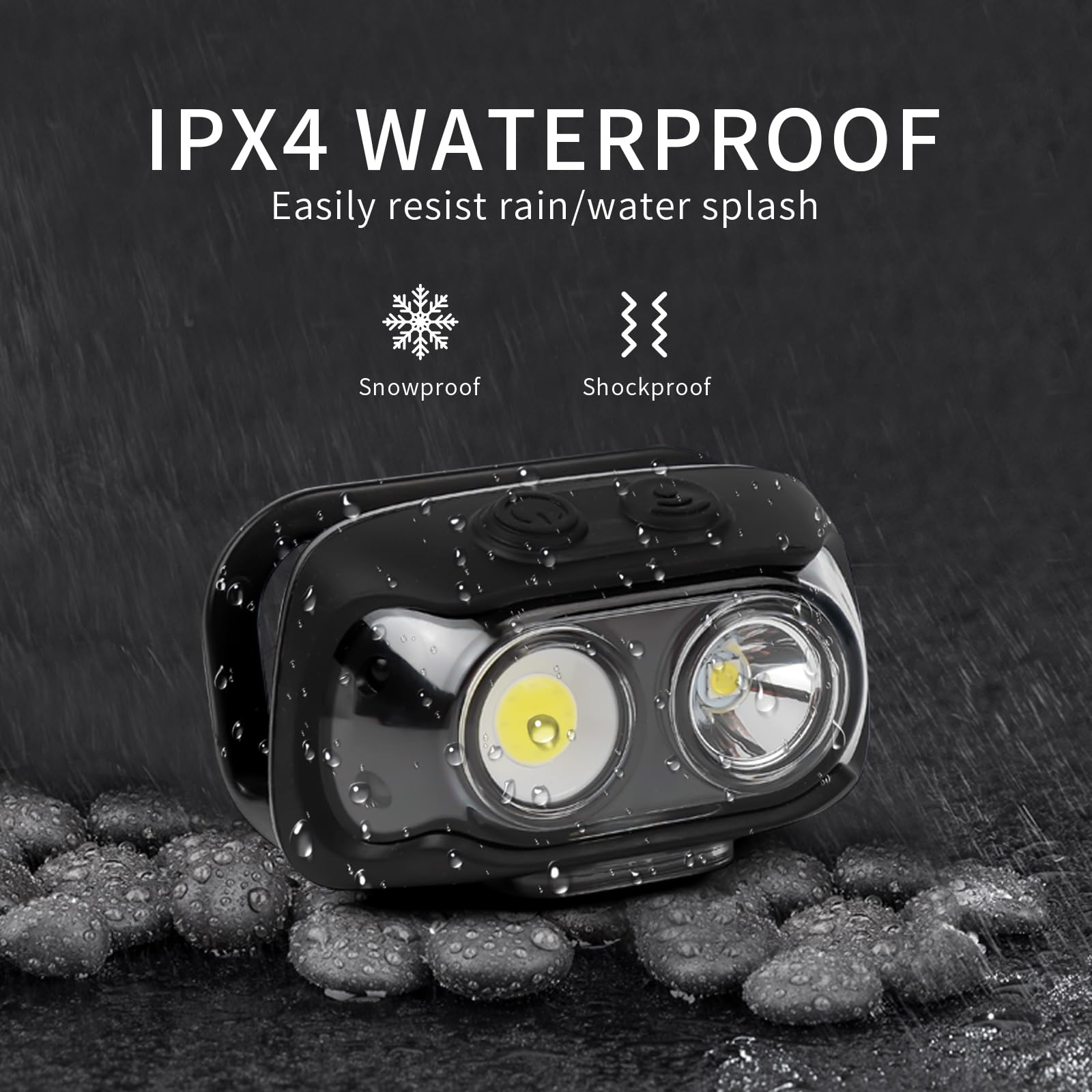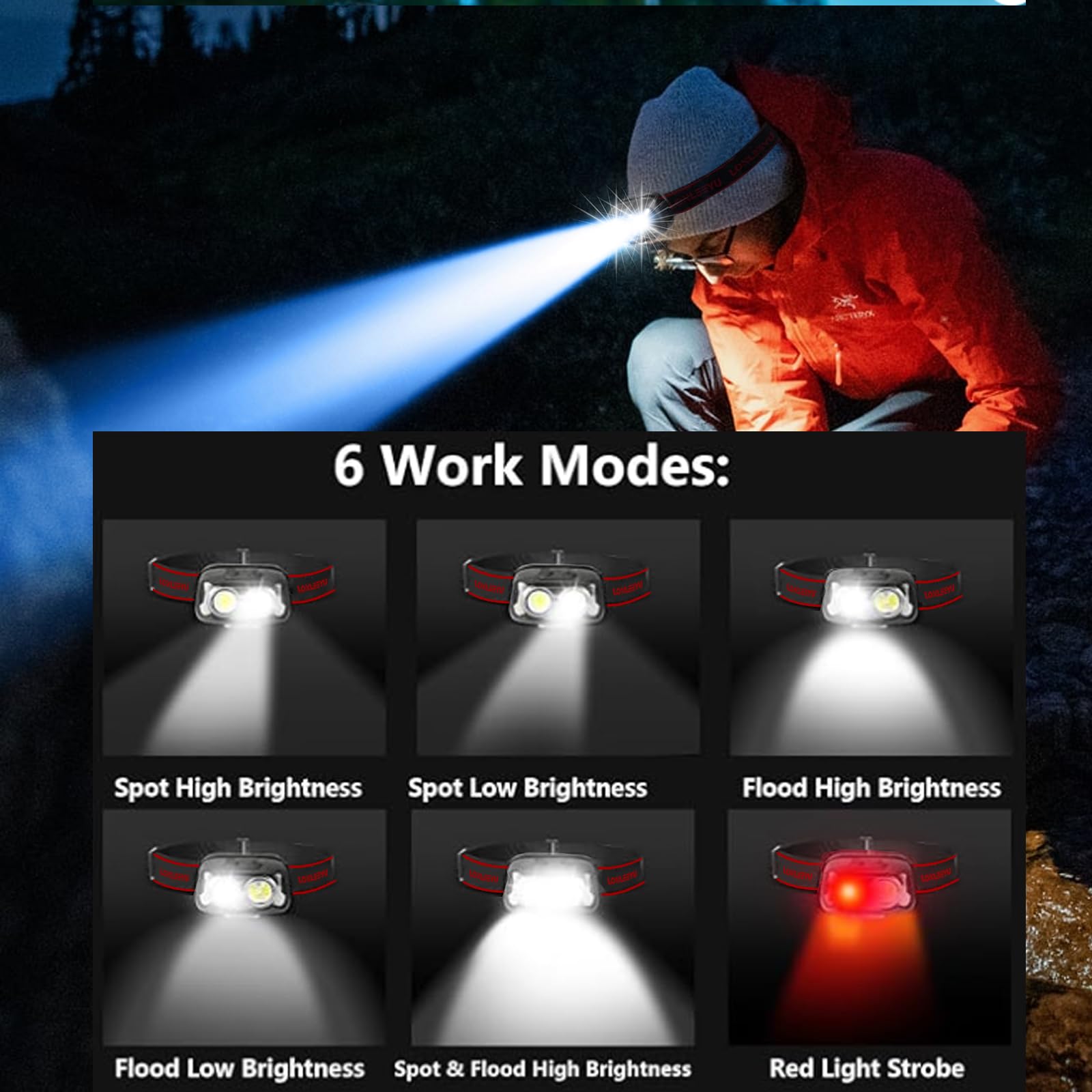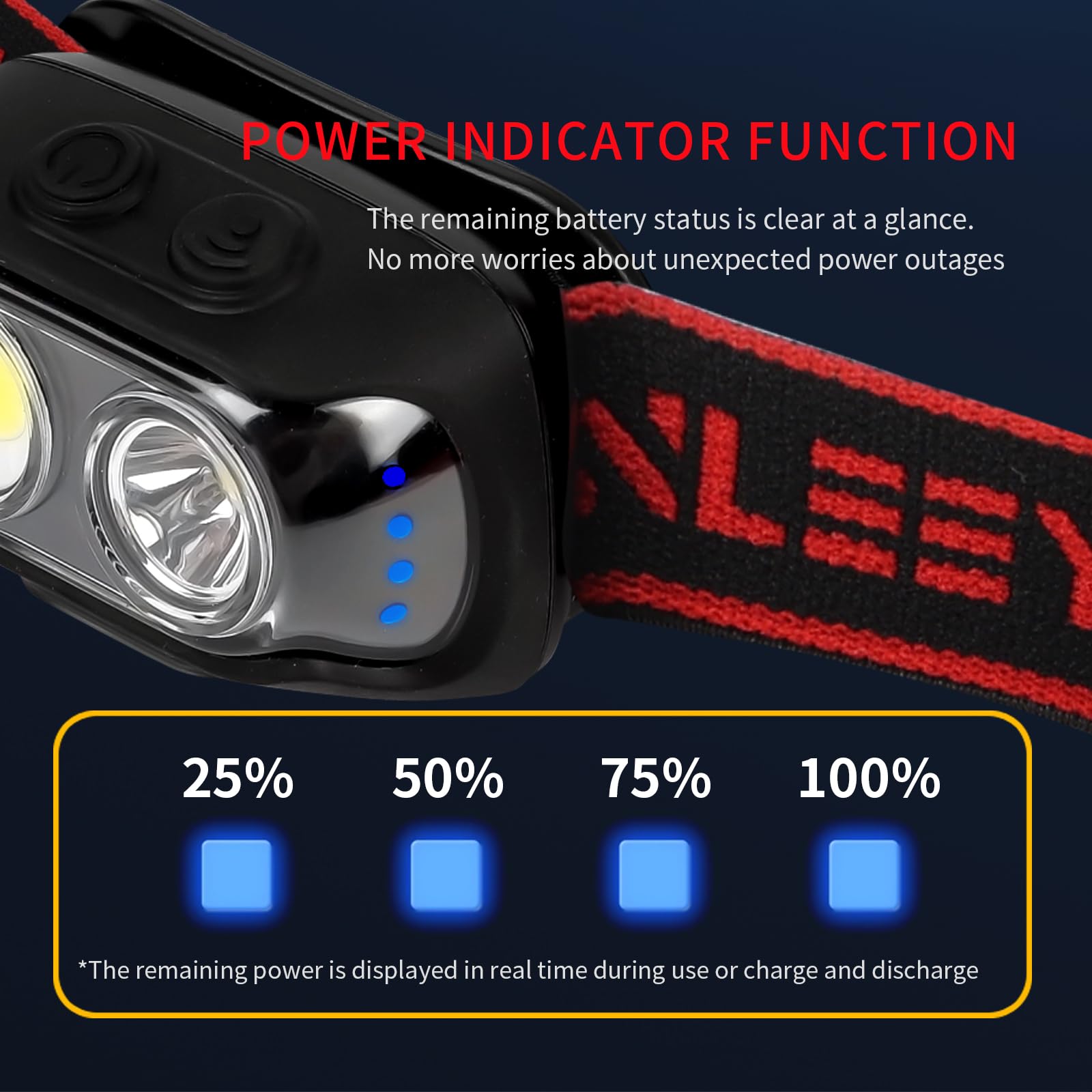 LONLEEYU Rechargeable Headlights, LED Headlight Flashlight with Motion Sensor, Adjustable Headband IPX4 Waterproof, 6 Lighting Modes Suitable for Outdoor, Running, Camping and Night Fishing
