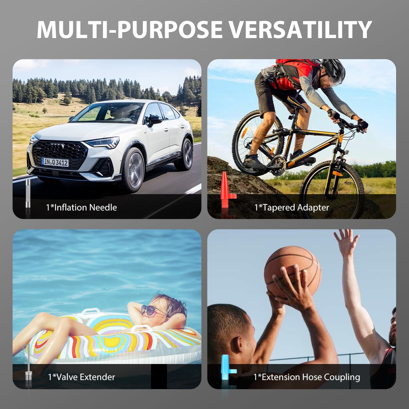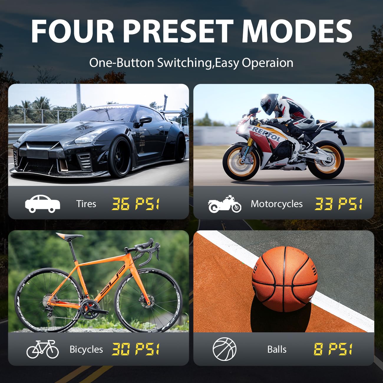 LONLEEYU Tire Inflator,120W Portable Air Compressor Pump for Car Tires with Tire Pressure Detection Preset and Auto Shutoff, 12V Up to 150 PSI Tire Pump with Digital Pressure Gauge and LED Light