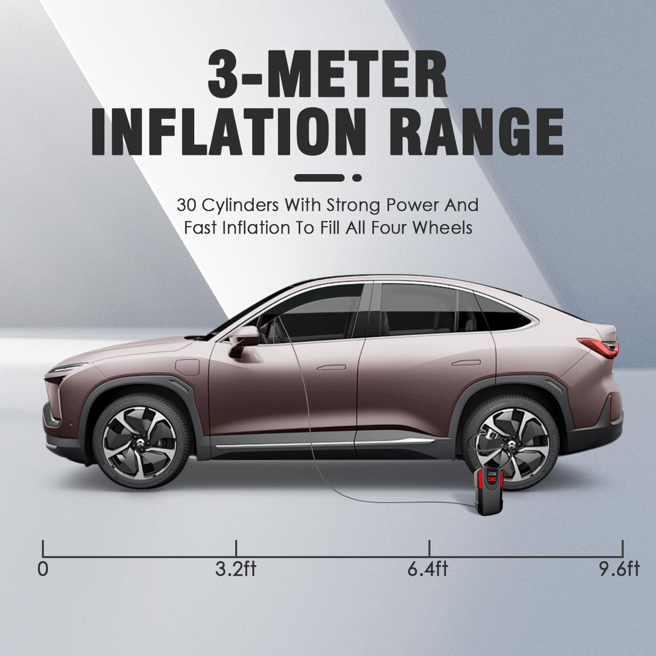 LONLEEYU Tire Inflator Air Pump, Portable Air Compressor for Car Tires, 12V DC 150 PSI Tire Pump with LED Light Digital Pressure Gauge for Car Bike