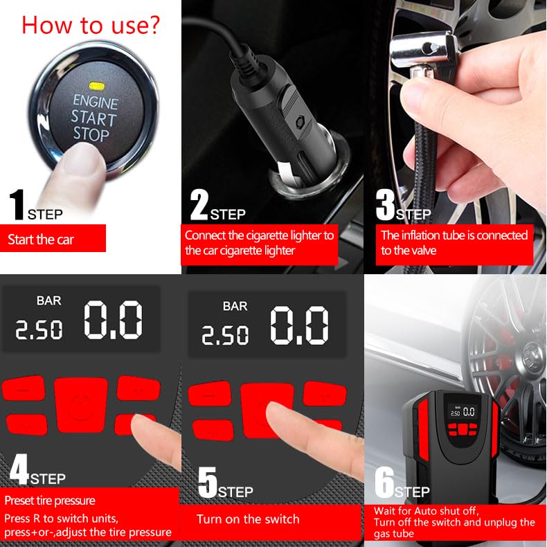 LONLEEYU Tire Inflator, Portable Air Compressor Air Pump for Car Tires, 8003