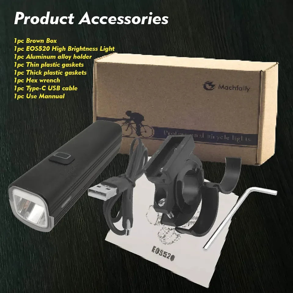 Machfally EOS520 Rainproof Usb Rechargeable Safety Waterproof Ipx6 Warning Bicycle Front Light