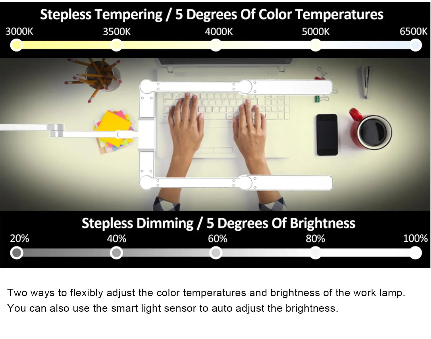 | Feature | 3 light sources design, Stepless Dimming, 5 Color Temperature |