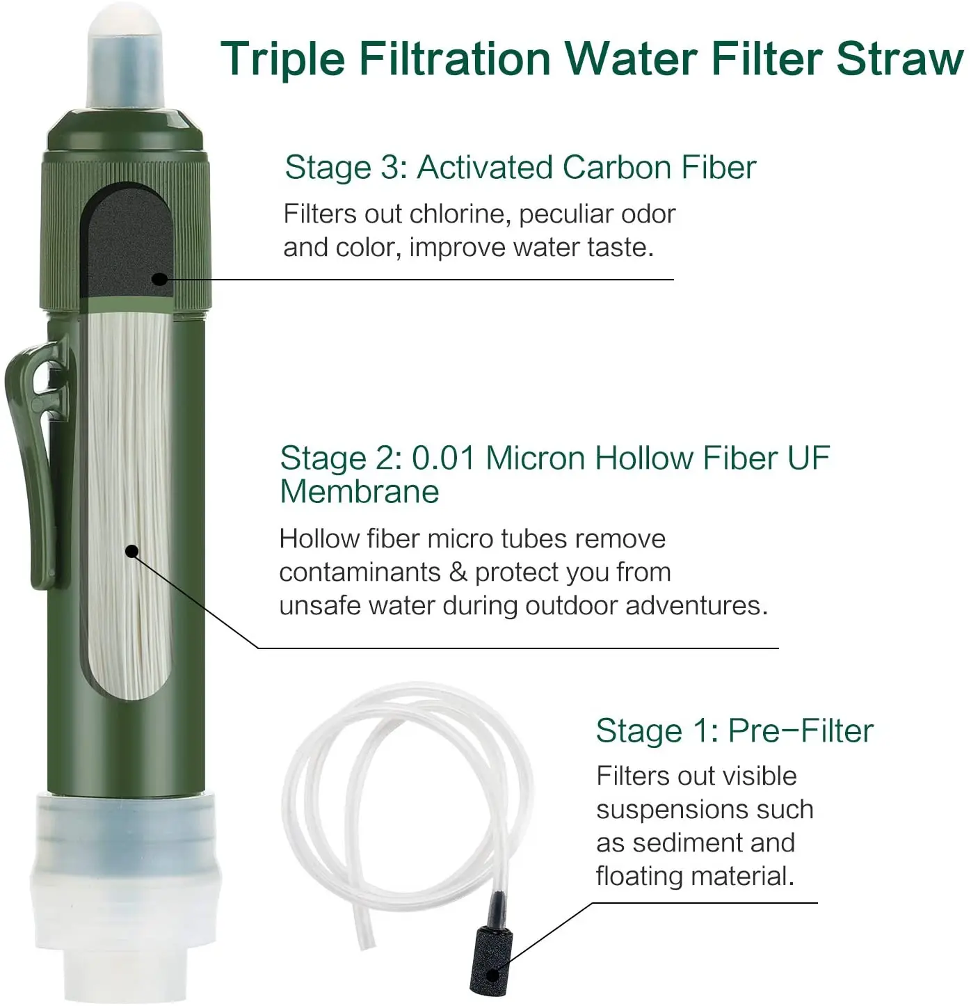 Outdoor Portable Water Purifier Camping Hiking Life Water Filter Straw survival kit