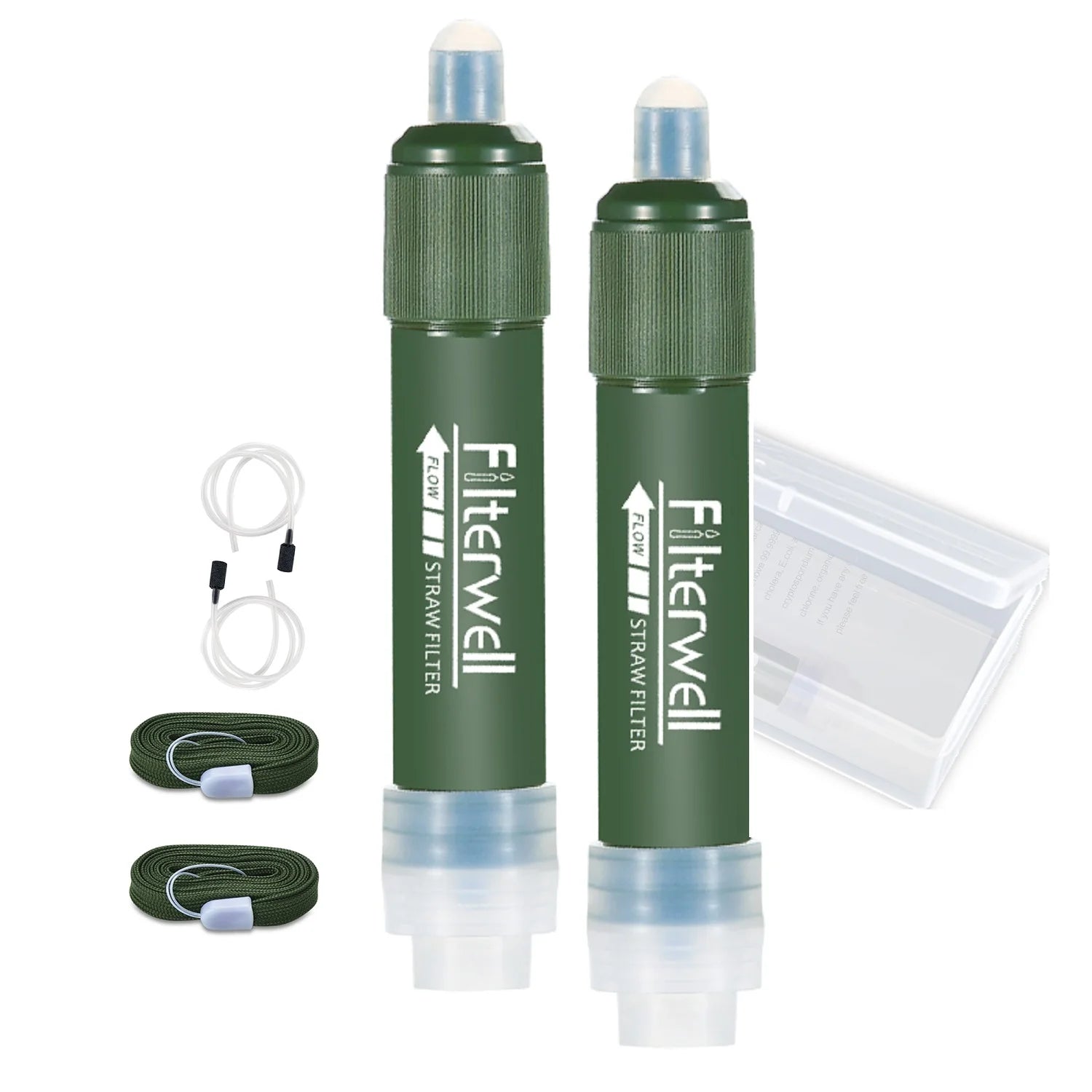 Two pcs 2 in 1 Low pressure hiking - 0.1 micron filtration water filter straw camping drinking straw