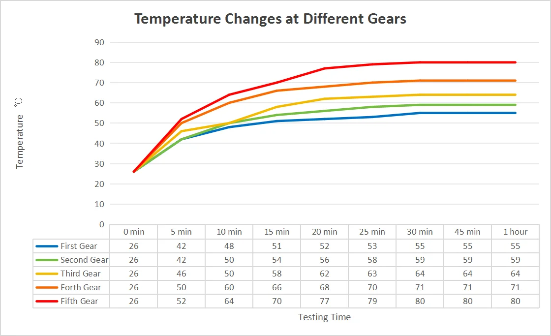 The handlebar surface temperature was measured at room temperature of 26 degrees Celsius and a voltage of 12V. It should be noted that the measured temperature may vary under different conditions.