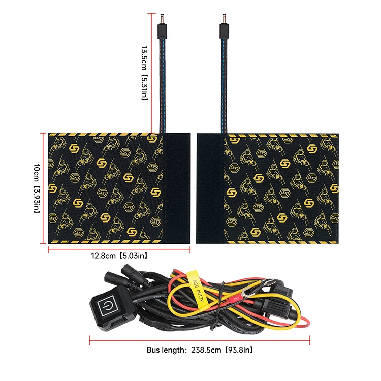 12V silicone-velcro 5+1 gear heating handle pad with memory ACC1.5m cable