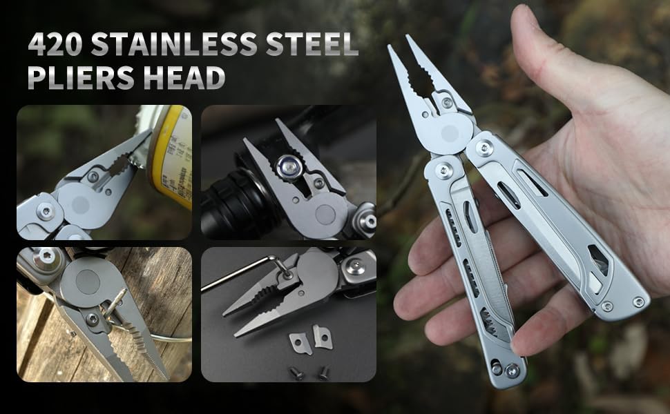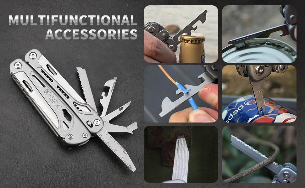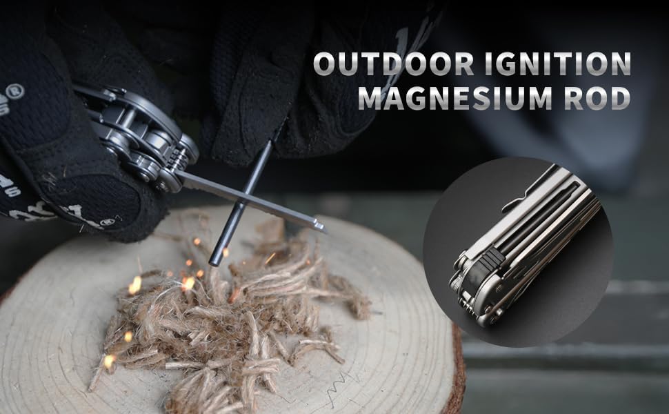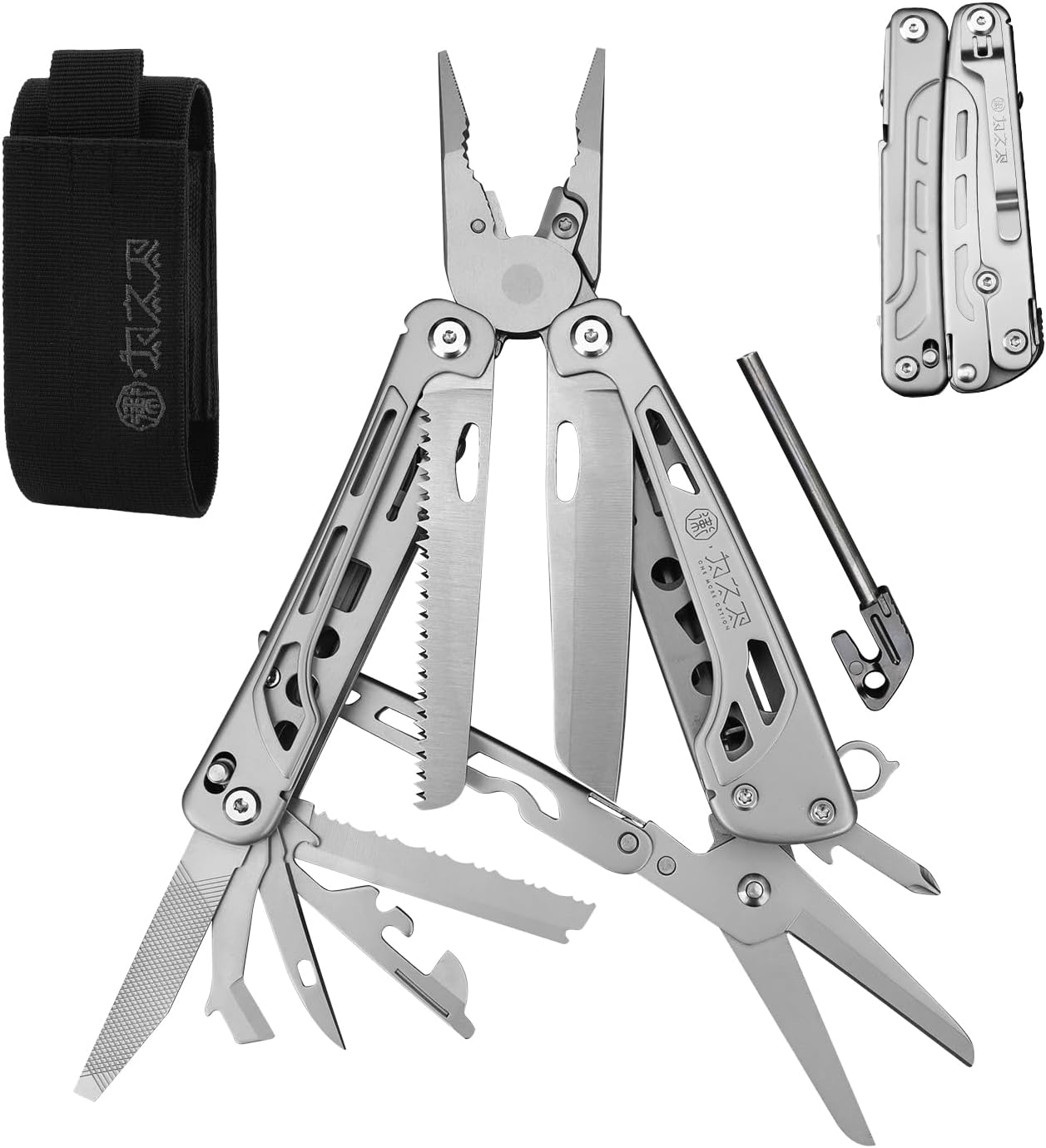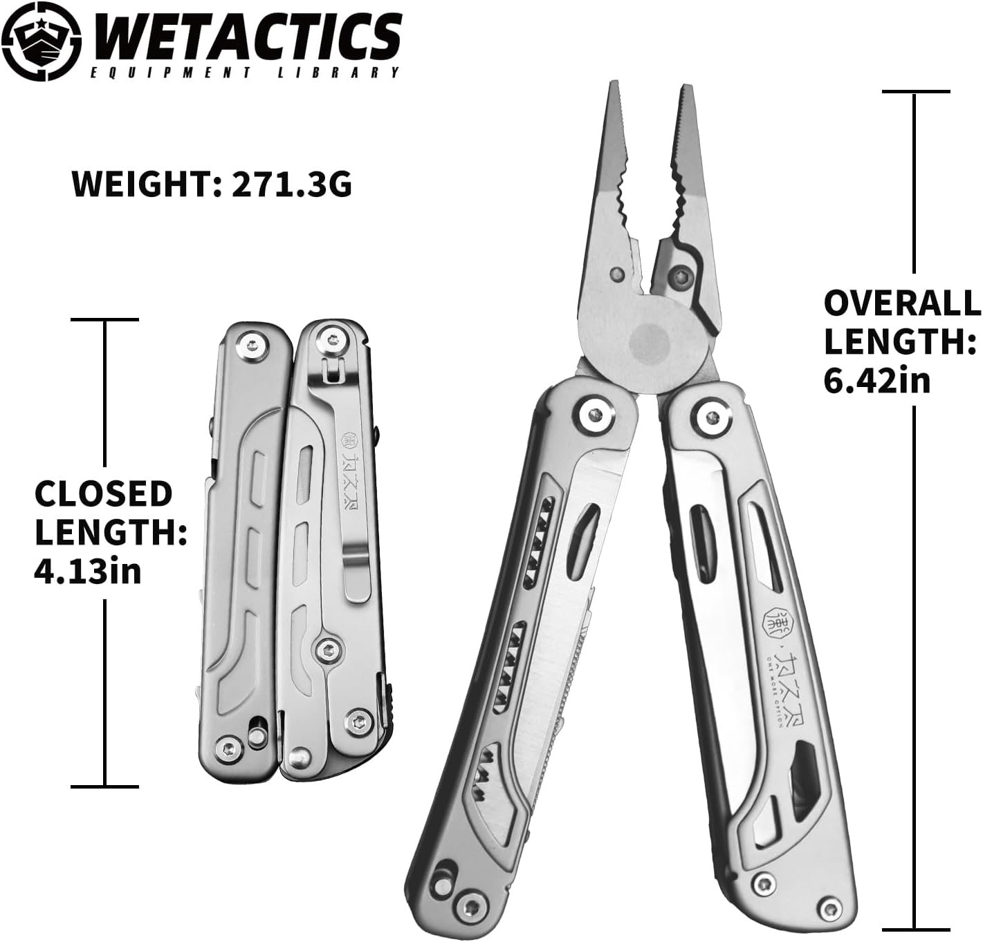 WETACTICS Multitool, light seeking 20in1,men's EDC with pocket knife, pointed nose pliers, ignition stick, folding scissors and wire stripping tool, outdoor knife gift,camping gear, stainless steel