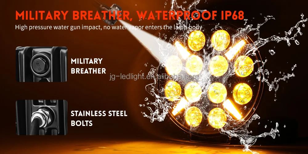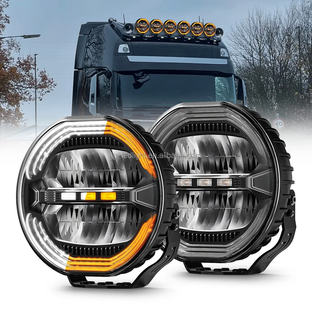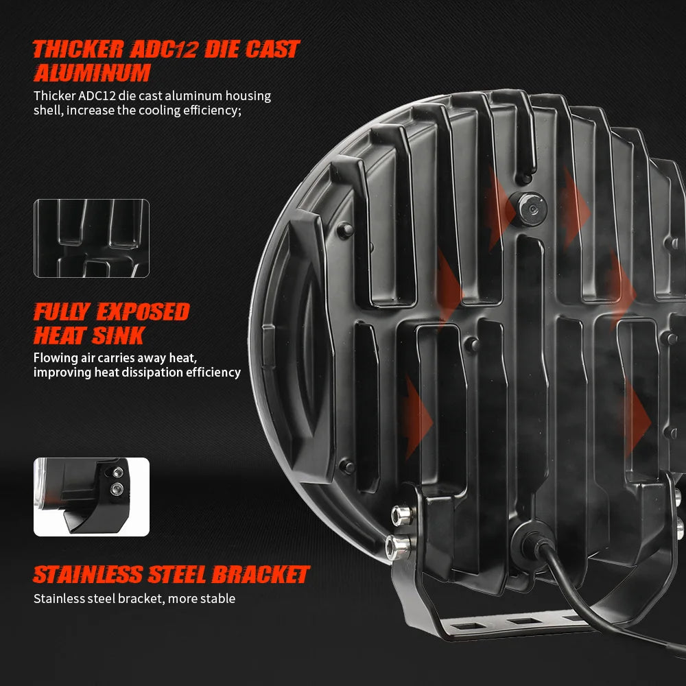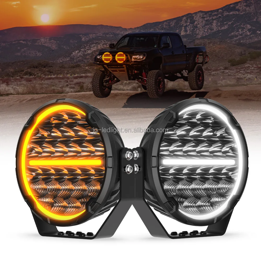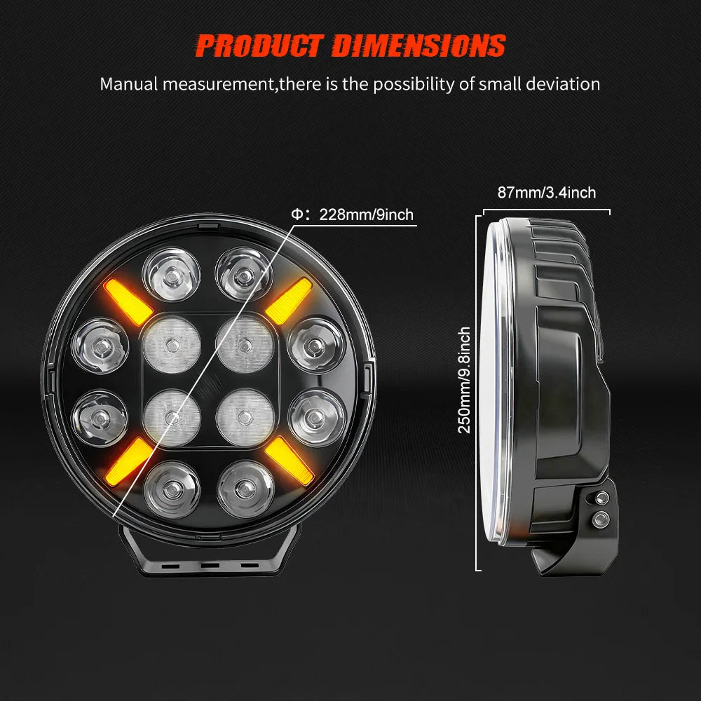 White Amber DRL Strobe Truck Work Lamp 9inch Round Combo LED Pods Car Driving Light 240W 13200LM on Front Bumper for Offroad 4WD