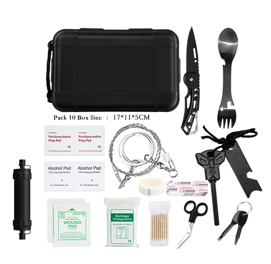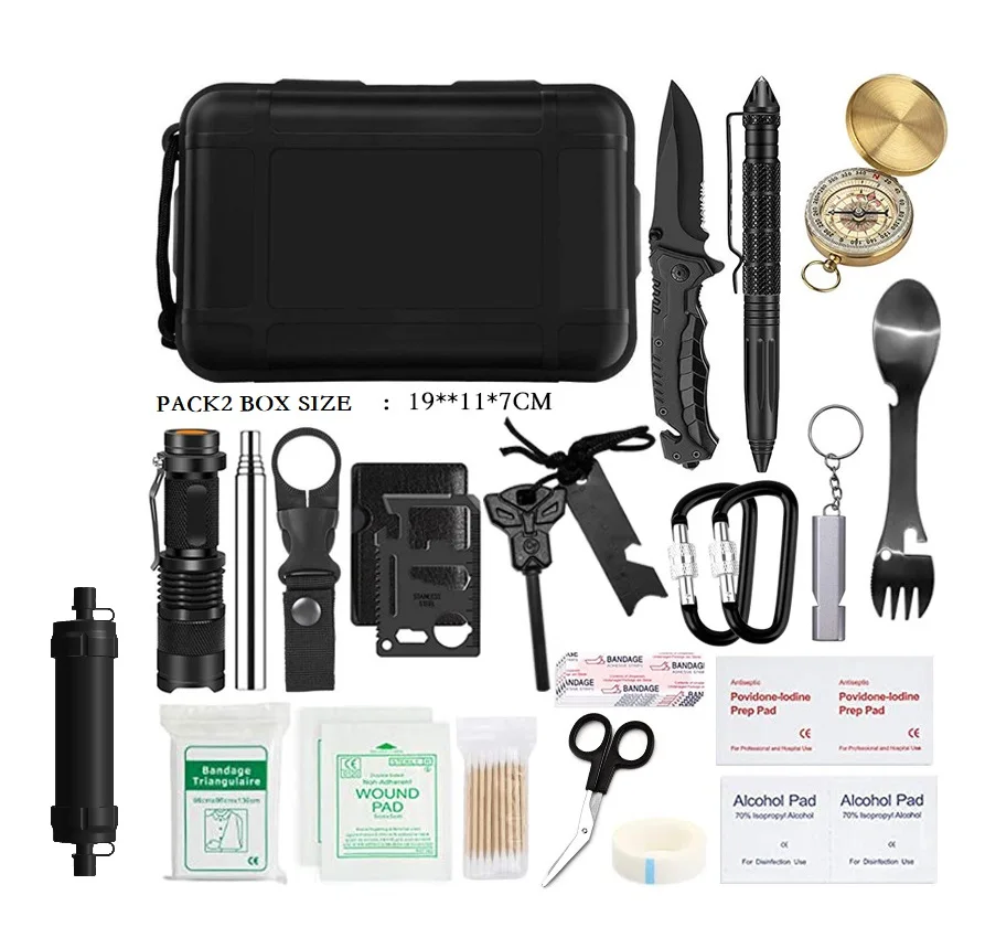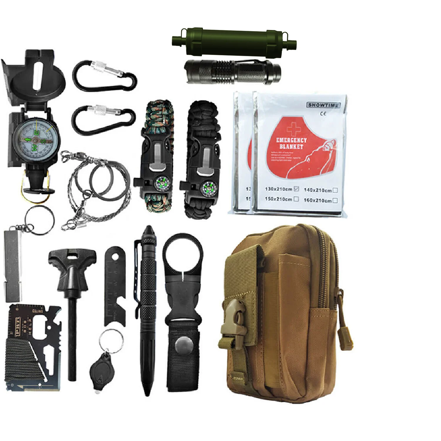 whole set of multi outdoor tactical survival gear pack with tool kit survival water purifier