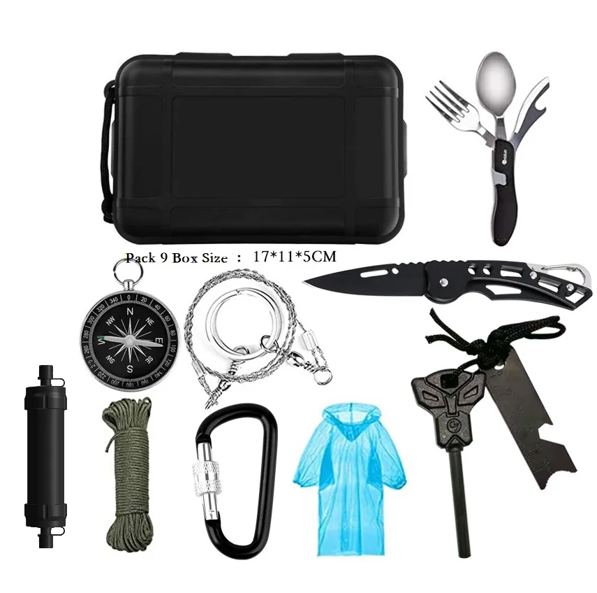 Whole Set of Multi Outdoor Tactical Survival Gear Pack with Tool Kit Survival Water Filter Straw Purifier