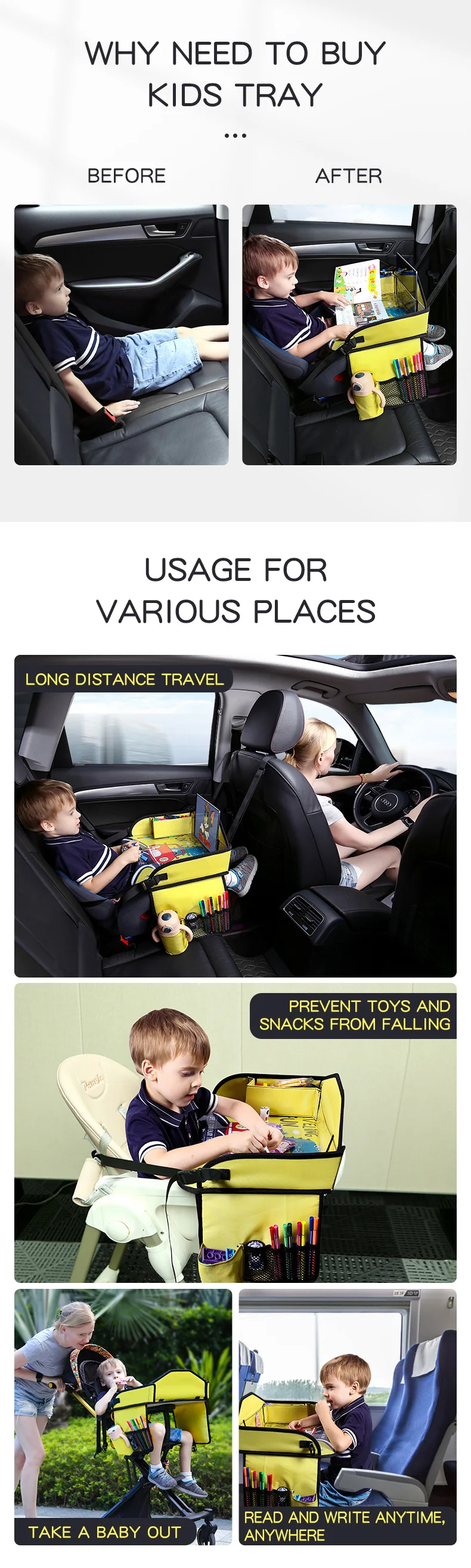 Wholesale Cartoon Baby Stroller Tray Child Dining Drink Table Car Play Tray Durable Travel Tray Kids Portable Car Travel Table